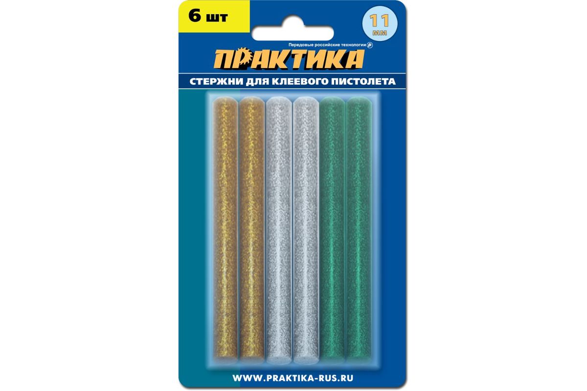Клей ПРАКТИКА 649-356 11х100мм 6шт для клеевого пистолета металлик 3 цвета