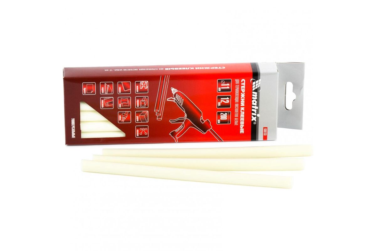 Универсальные клеевые стержни MATRIX предназначены для использования с термоклеящими пистолетами. Применяются для склеивания изделий из дерева, металла, пластика, ткани, кожи, стекла, керамики, бумаги, картона, резины и других материалов.