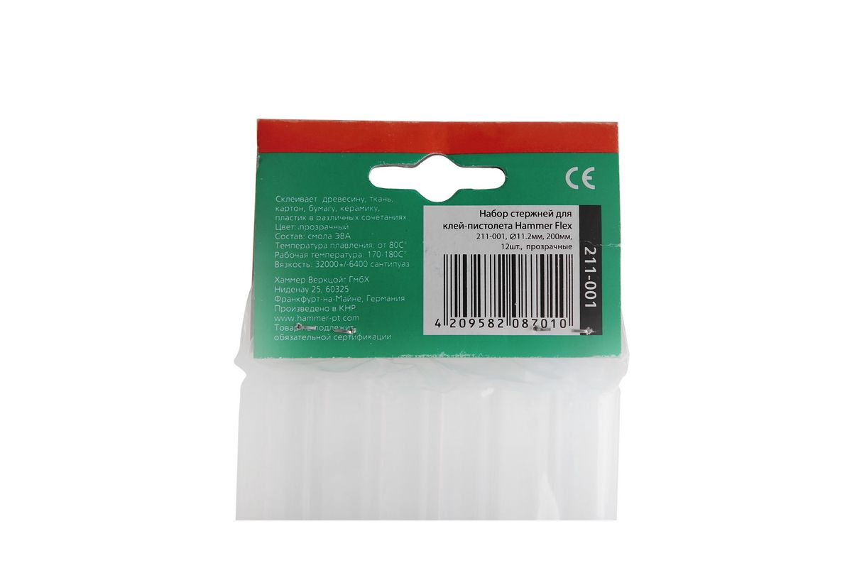Набор стержней для клей-пистолета Hammer 211-001 11.2мм, 200мм, 12шт., прозрачные