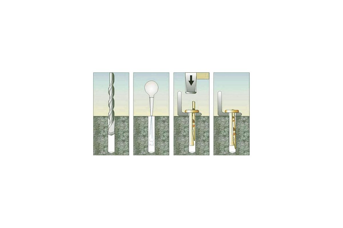 - Анкер забивается молотком.