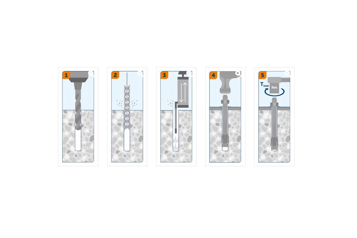 - Анкер с контролируемым моментом затяжки для предустановки, сквозного и дистанционного монтажа;