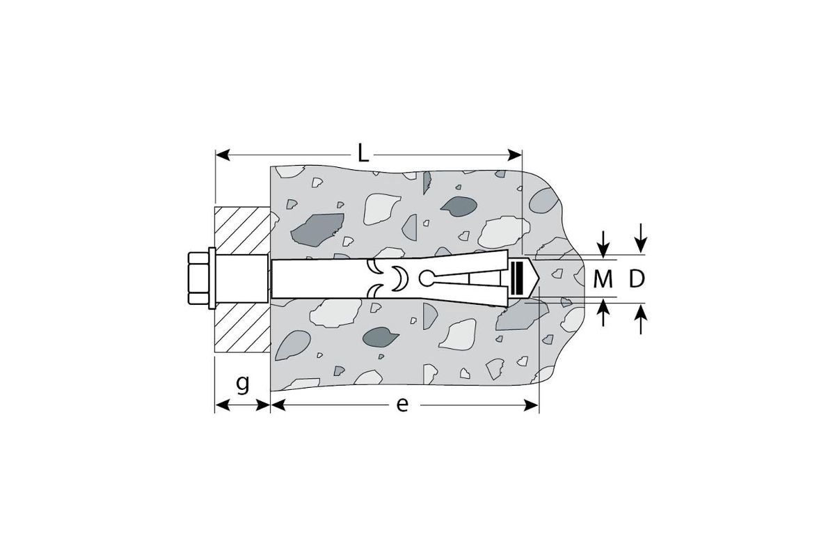 - Используется для крепления тяжеловесных конструкций, кабельных трасс, несущих консолей, перильных ограждений, деревянных конструкций, поручней, окон, решеток, металлических профилей и т.п. методом сквозного монтажа к полнотелому бетону, природному строительному камню, полнотелому кирпичу;