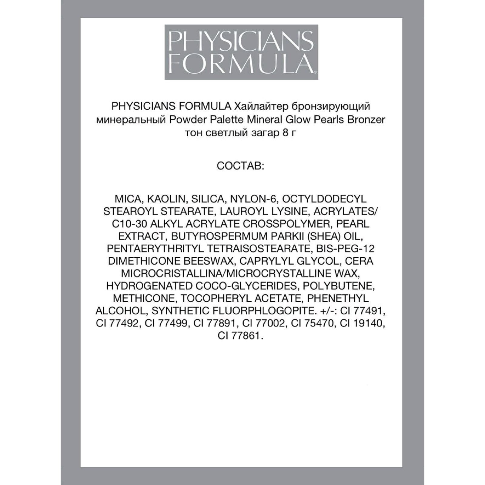 Хайлайтер-бронзер для лица Physicians Formula Glow Pearls Bronzer, тон светлый загар, 8 г