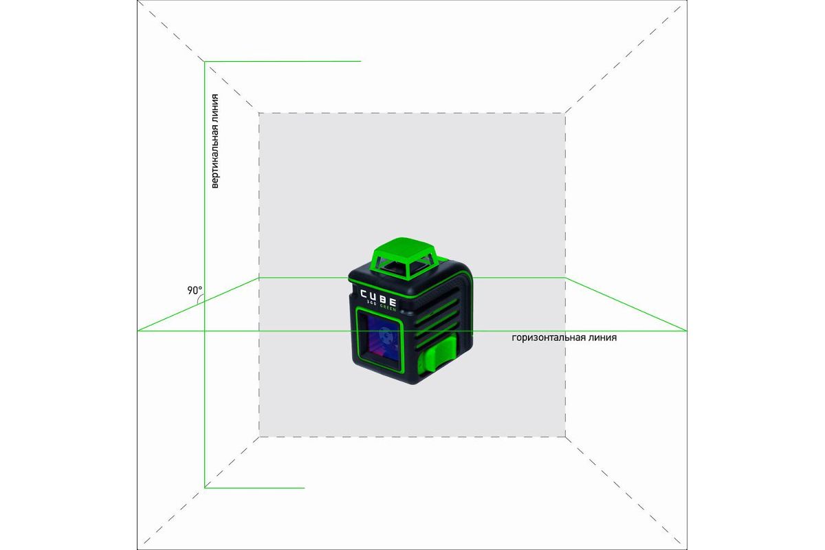 Яркий зеленый луч. Главное отличие ADA CUBE 360 Green от других лазерных уровней это использование зеленого лазерного излучателя. Зеленый луч отлично подходит для разметки при ярком свете. Зеленую лазерную линию очень хорошо видно по сравнению с красной при равных условиях освещенности.