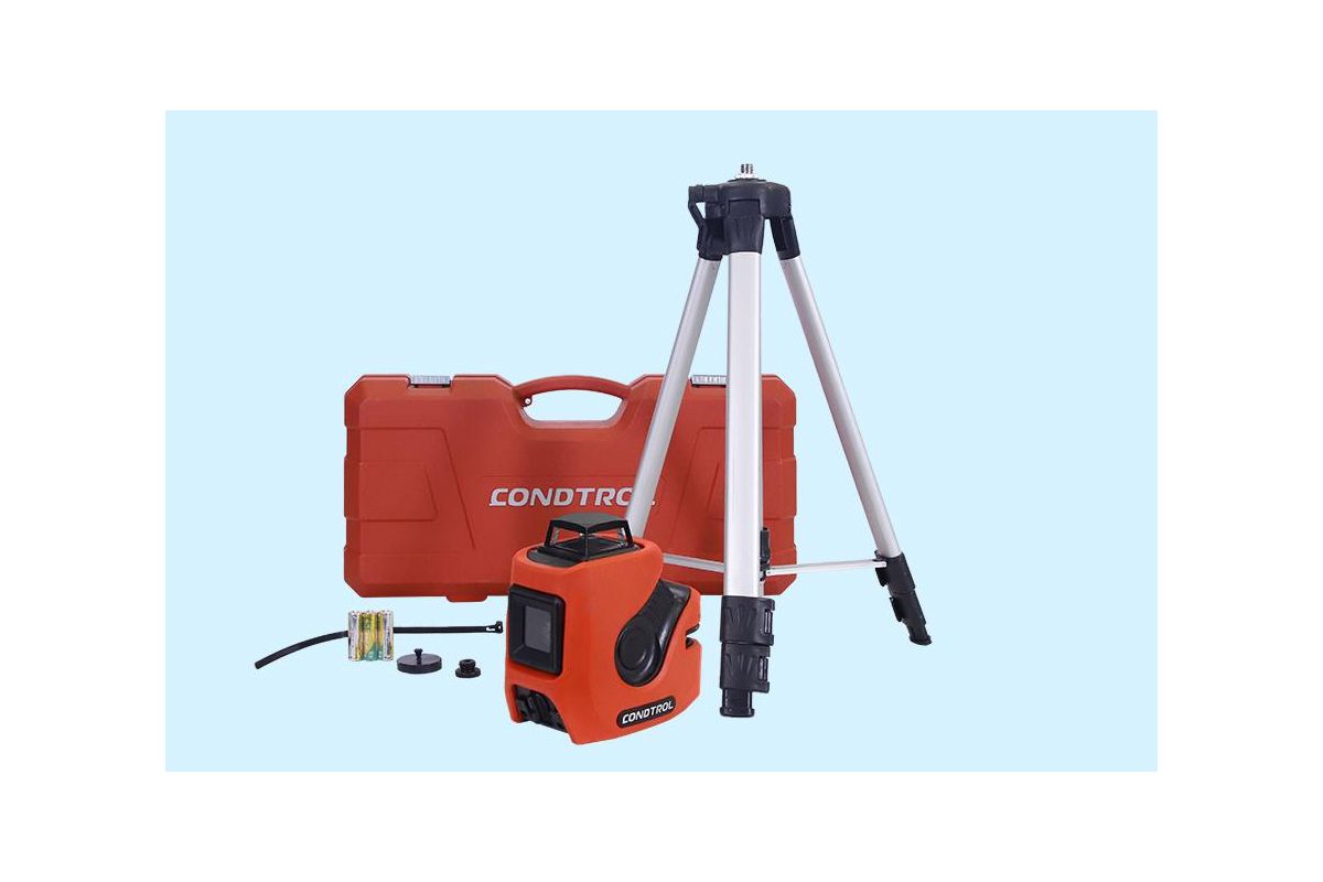 Лазерный нивелир CONDTROL NEO X1-360 Set проецирует вертикальный луч и горизонтальную плоскость с развёрткой 360 градусов. Погрешность нивелирования – не больше 0,3 мм/м. Прибор поставляется в комплекте со штативом, магнитным держателем, кейсом и другими аксессуарами.
