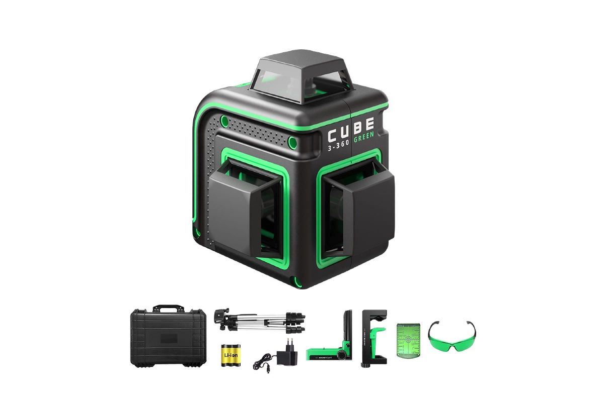 Лазерный уровень ADA CUBE 3-360 GREEN – самый компактный лазерный уровень проецирующий три линии 360°. Благодаря специальному излучателю горизонтальный и вертикальные лучи проецируется на 360°. Три взаимно перпендикулярные линии позволяют выполнить абсолютно любую разметку. Идеально подходит при проведении строительных или ремонтных работ снаружи и внутри помещений.