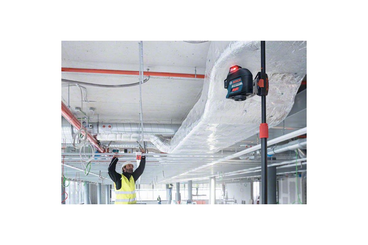 Красные линии лазера отлично видны на расстоянии до 40 метров без приемника. С приемником дальность действия увеличивается до 80 метров.