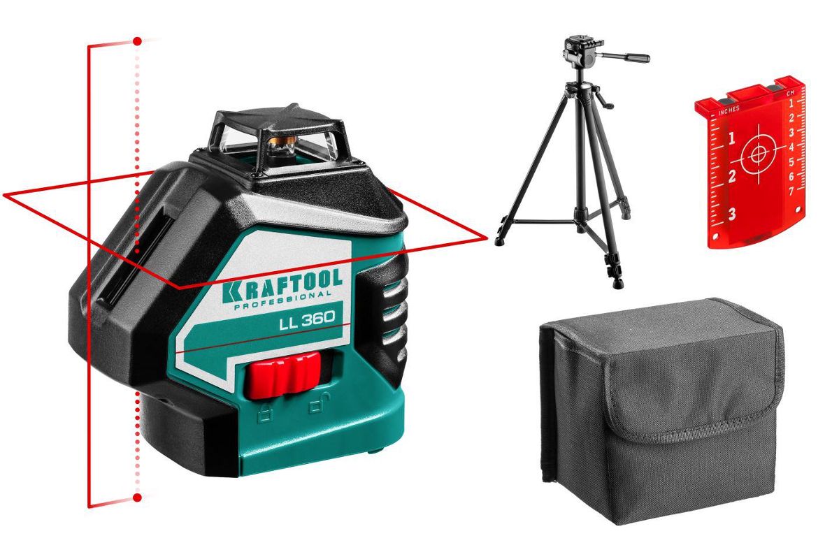 Лазерный уровень KRAFTOOL 34645-3 проецирует две точки отвеса, вертикальную и круговую горизонтальную линии. Дальность измерений – 20 м без детектора и 70 м с детектором. Погрешность – не больше 0,2 мм/м. Прибор подходит для строительства, отделочных работ, установки мебели и т.д. Поставляется с чехлом, штативом и мишенью.