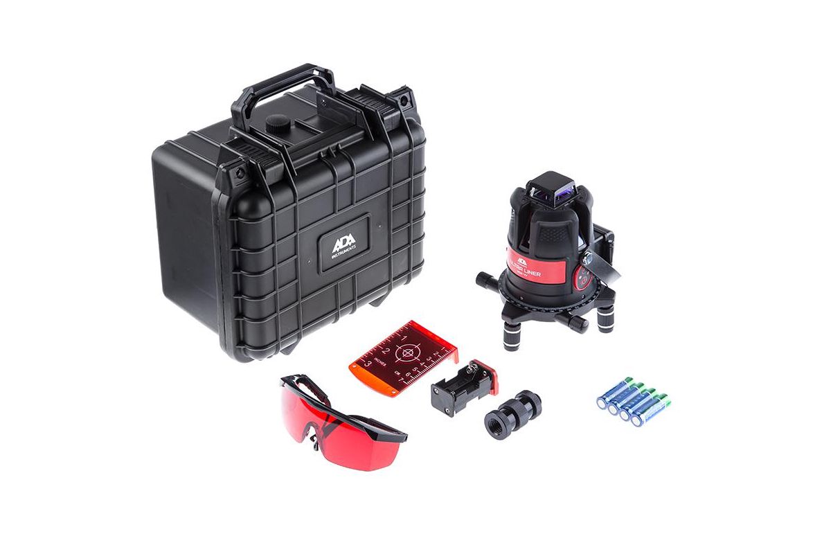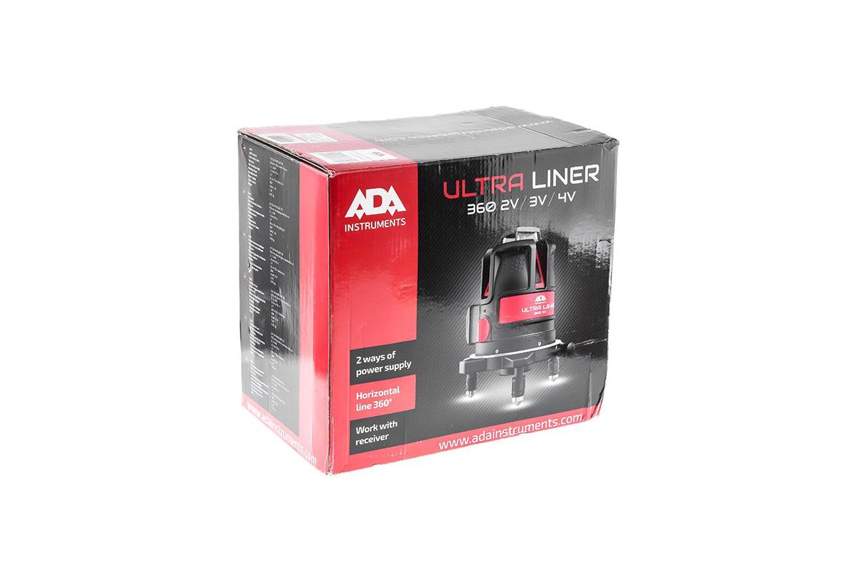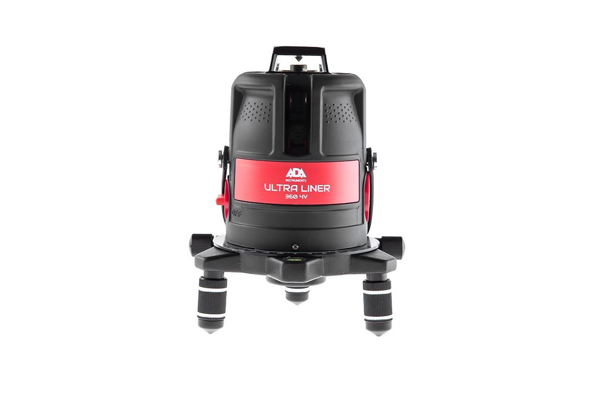 ADA ULTRALINER 360 4V – профессиональный лазерный нивелир для разметки при строительстве или ремонте. Проецирует 4 вертикальные линии, одну горизонтальную плоскость и точку отвеса. Дальность работы: 20 м без приёмника, 70 м – с ним. Линии пересекаются под углом 90°, образуя лазерный крест. Маятниковый компенсатор выравнивает неровность установки до 3°.