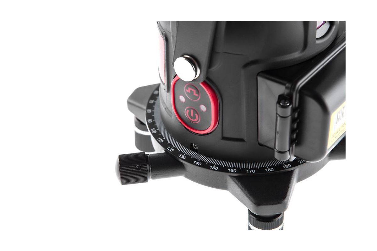Градусная шкала в основании пригодится при последовательной разметке вертикальных поверхностей. Для смещения вертикальной разметки поверните сам нивелир, оставив подставку на месте.