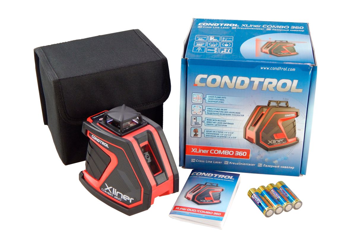 CONDTROL Xliner Combo 360 – лазерный нивелир для профессионального строительства и ремонтных работ. Строит круговую горизонтальную плоскость, одну вертикальную линию с углом развёртки 140° и две точки отвеса. Пригодится для заливки полов, укладки плитки, поклейки обоев, при монтаже натяжным потолков, осветительных приборов и т.д.