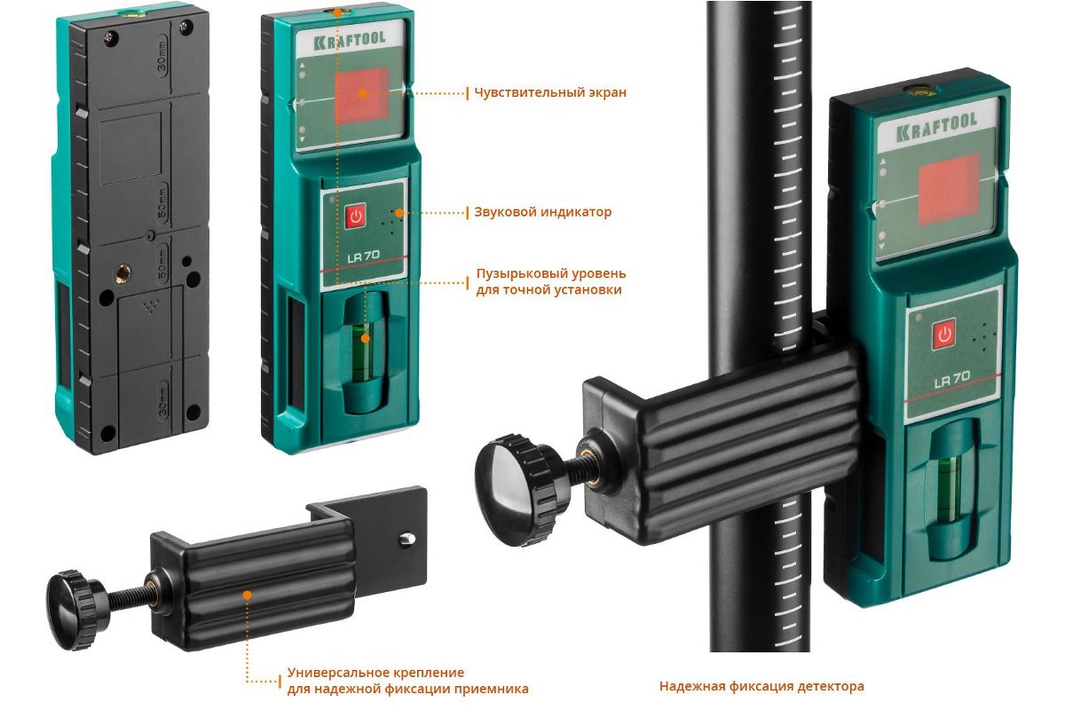 Детектор с экраном повышает точность проводимых работ. Нивелир подходит для использования на неровных ландшафтах.