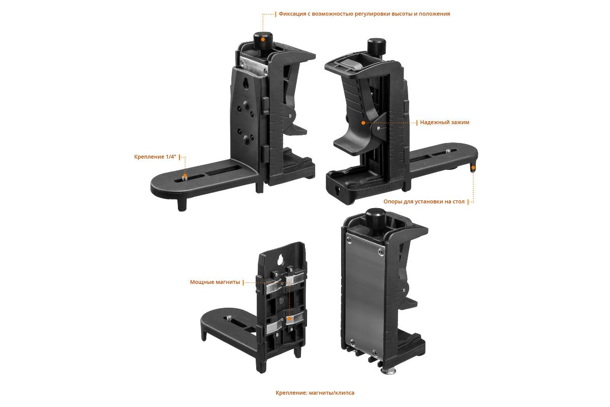 Присоединительная резьба на корпусе 1/4'' и 5/8'' позволит установить нивелир на штатив. Штатив не входит комплект.