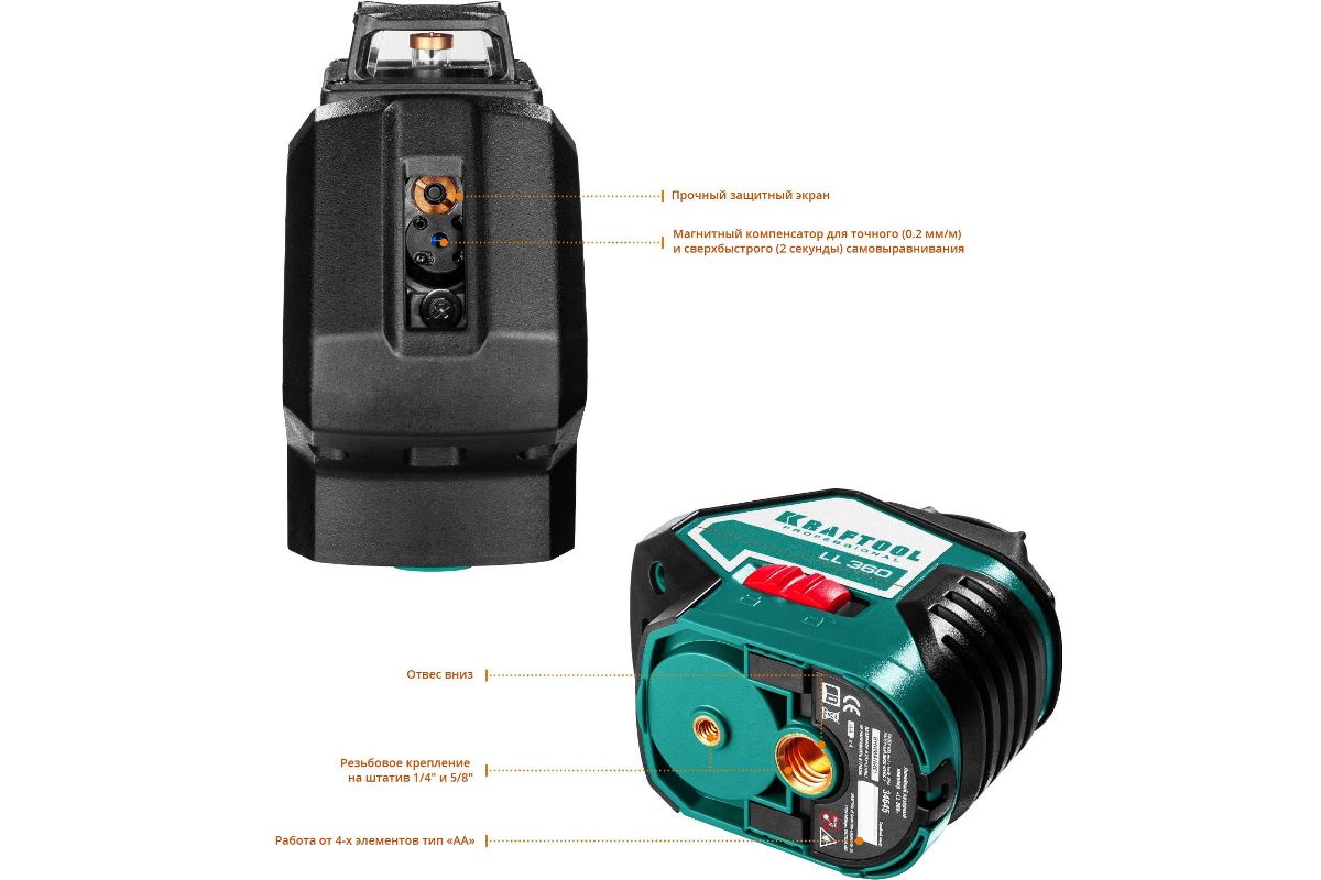 KRAFTOOL 34645-4 – лазерный уровень для построения плоскостей и измерения высоты, площадей, расстояний или углов. Дальность измерения без приёмника – 20 м. Погрешность ±0,2 мм/м. Пригодится на строительных и ремонтных работах в помещении или на открытой площади.