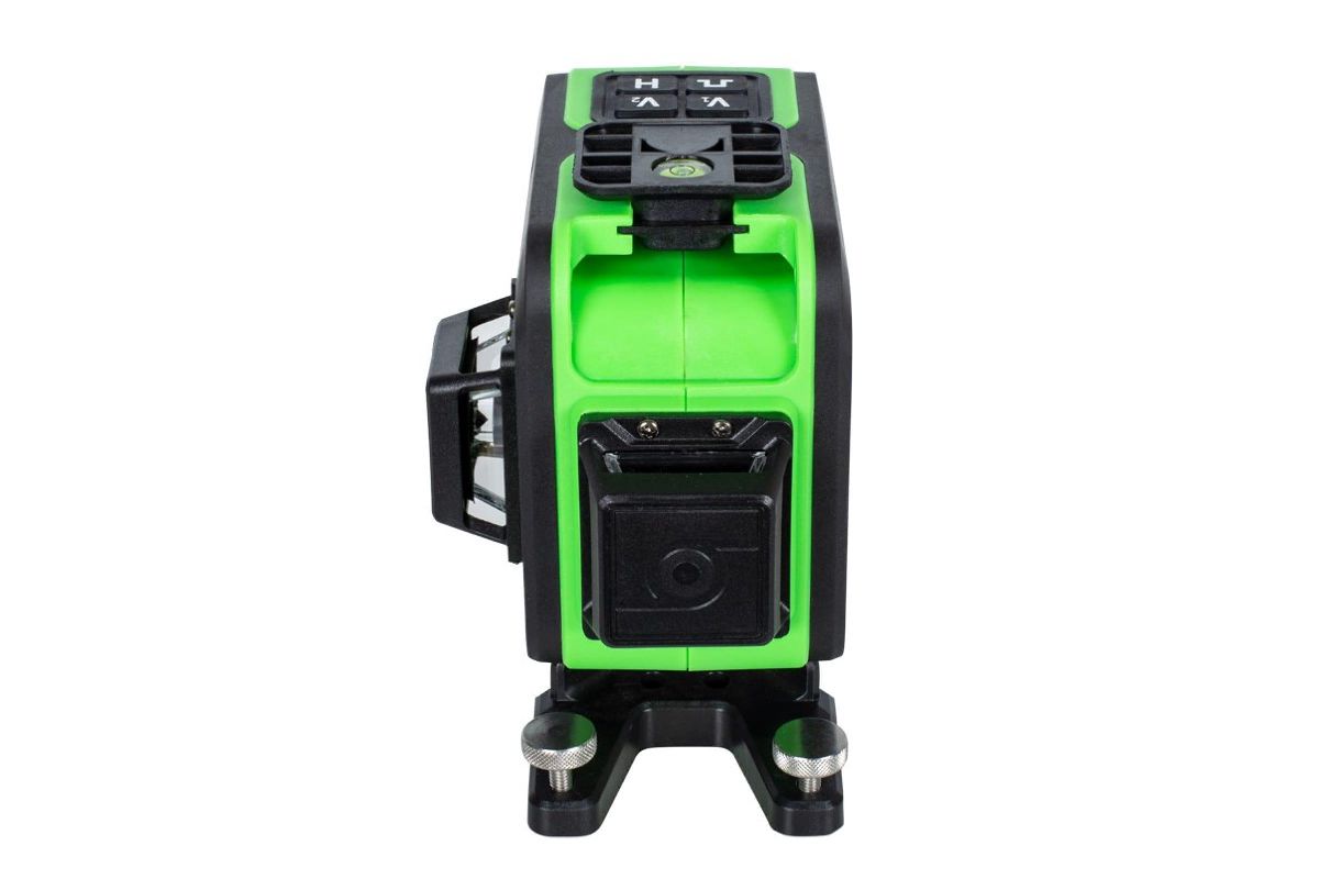 С помощью пульта ДУ можно заблокировать стабилизатор, переключить плоскости либо же отключить их вовсе. Раскладка дублирует кнопки на лазерном уровне во избежание ошибок. Для упрощения идентификации лучей на засвеченных стенах в набор входят зеленые очки.