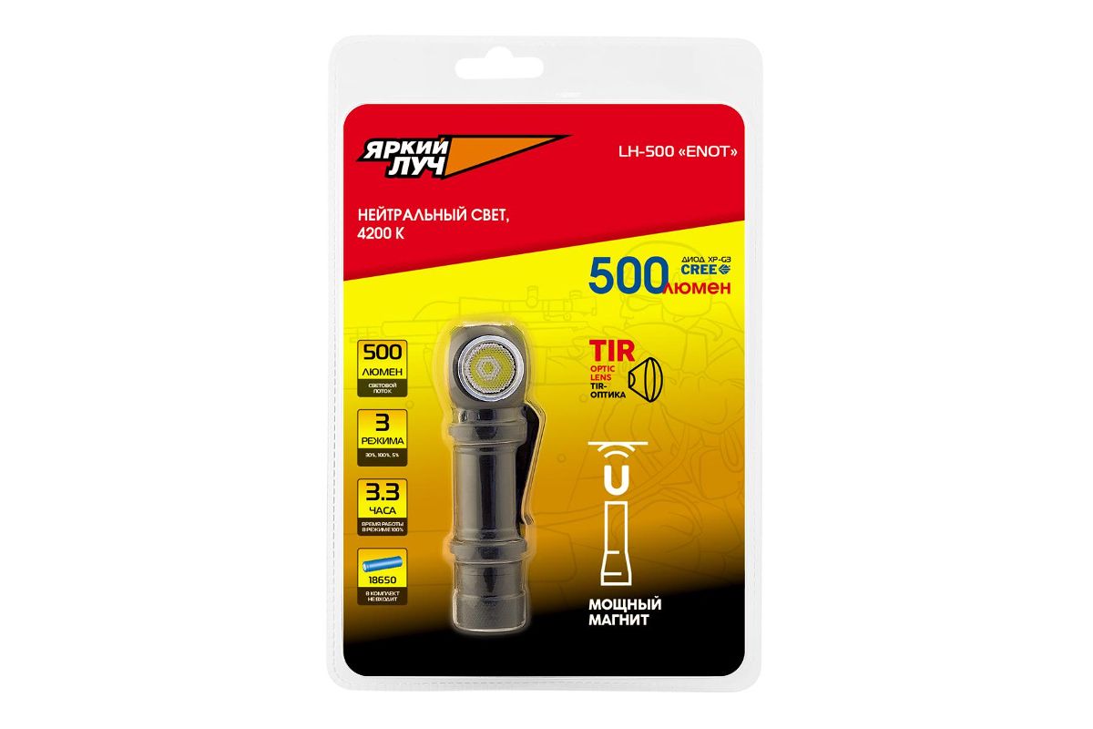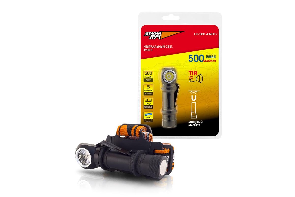 Фонарь ЯРКИЙ ЛУЧ LH-500 ENOT налобный/ручной CREE XP-G3 500лм 3реж. клипса/магнит, без акк.
