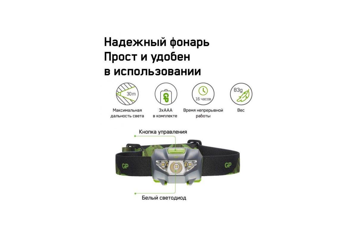 Фонарь светодиодный налобный GP CH32E-2CRFB1/10 3хААА