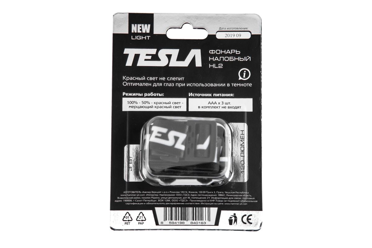 Фонарь налобный TESLA HL2 3Вт, 120 люмен, красный свет