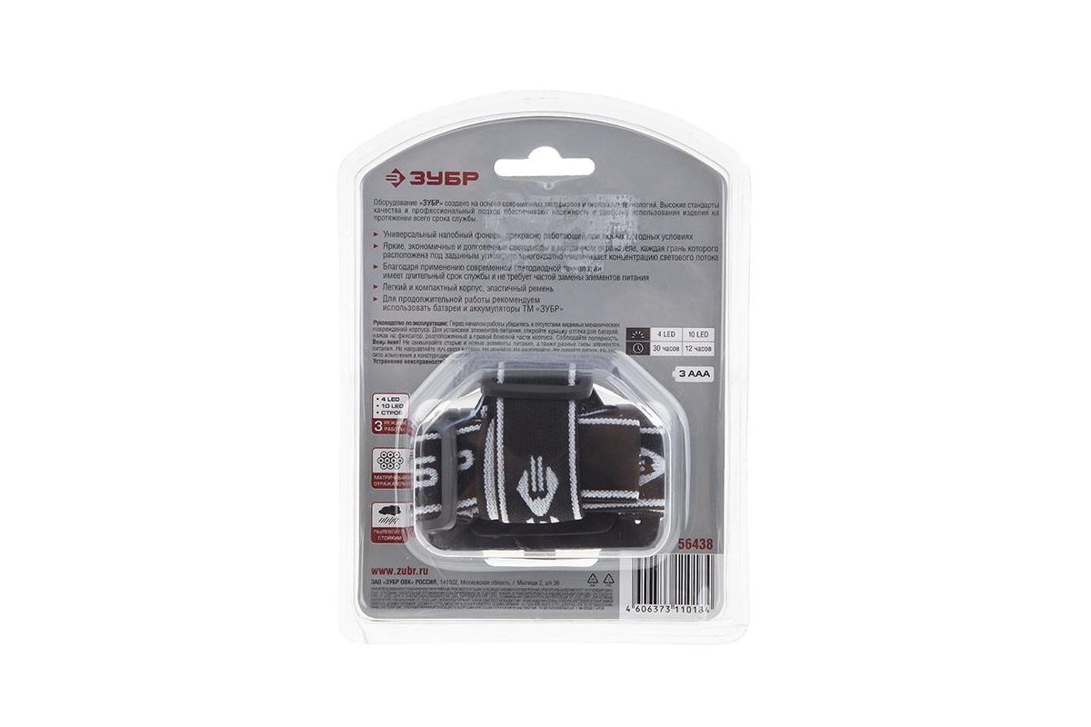 Фонарь ЗУБР 56438 мастер налобный светодиодный 10ultra led матричный рефлектор 3 режима 3ааа