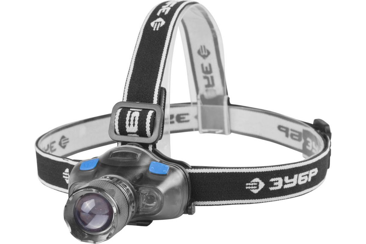 Фонарь ЗУБР 56432 эксперт налобный светодиодный 3Вт(120лм)+2led регулируемый фокус 4 режима 2ааа