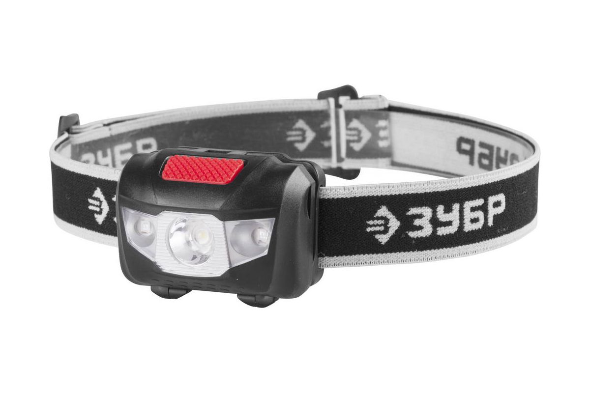 Фонарь ЗУБР 56436 мастер налобный светодиодный 1Вт(80лм)+2led 4 режима 3ааа