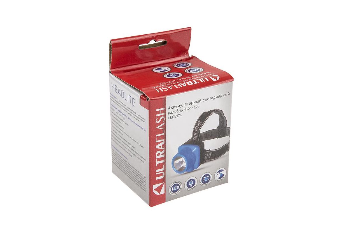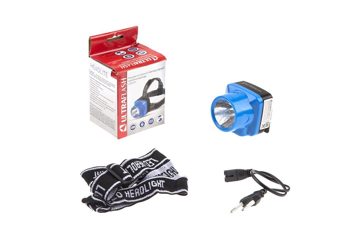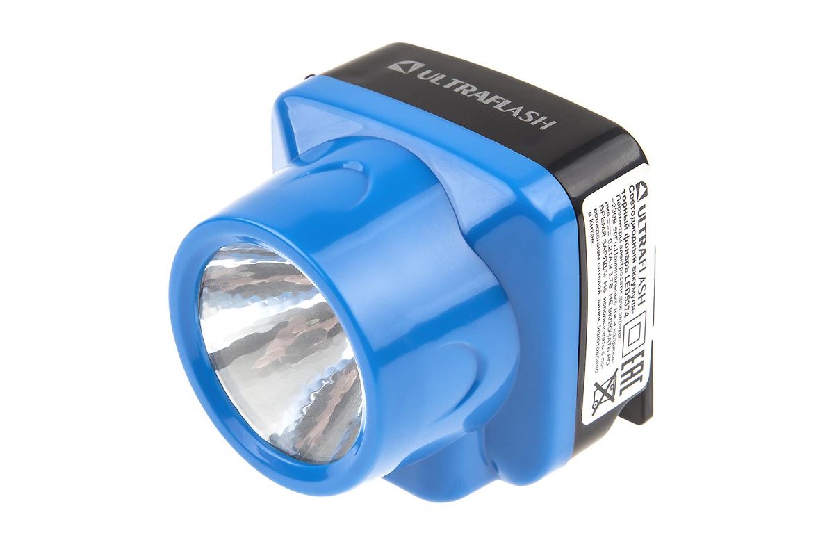 Фонарь ULTRAFLASH LED5374 фонарь налобн аккум 220В. голубой. 0.4 Ватт LED. 1 реж. пласт. бокс