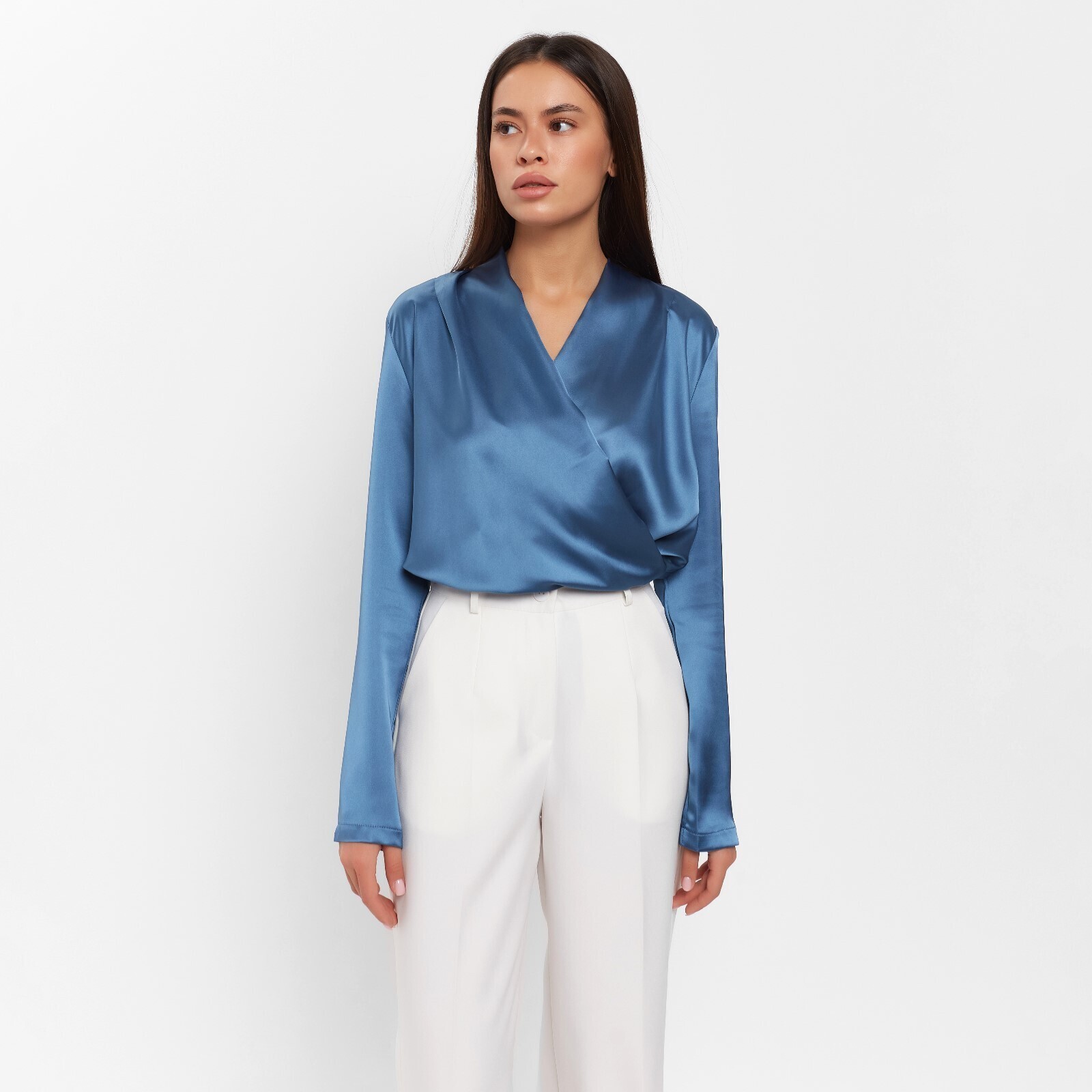 Блуза женская с драпировкой MIST: Classic Collection р. 42, цвет синий