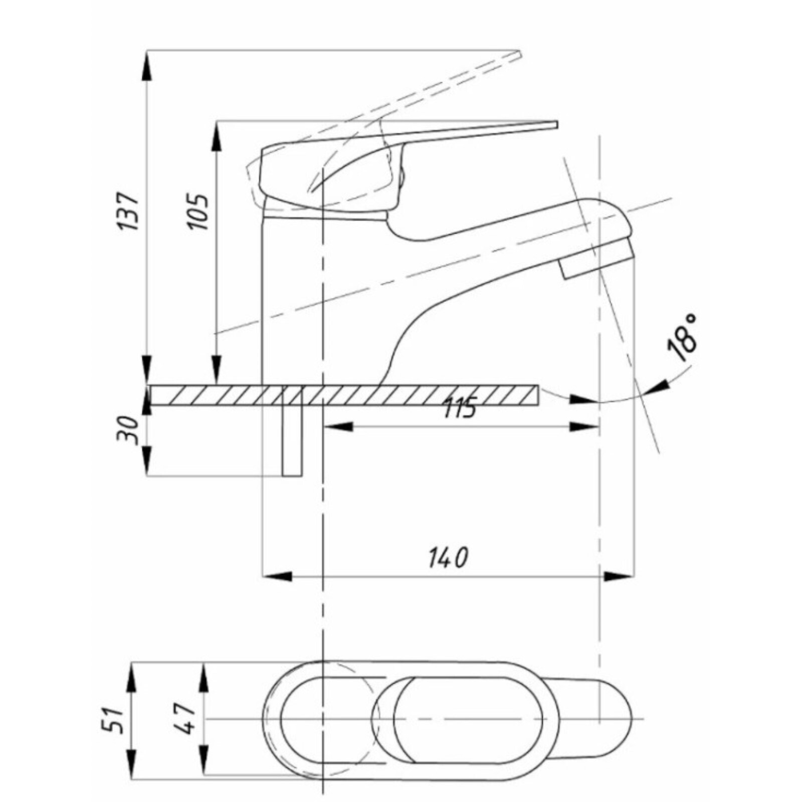 • Длина излива, мм 115
