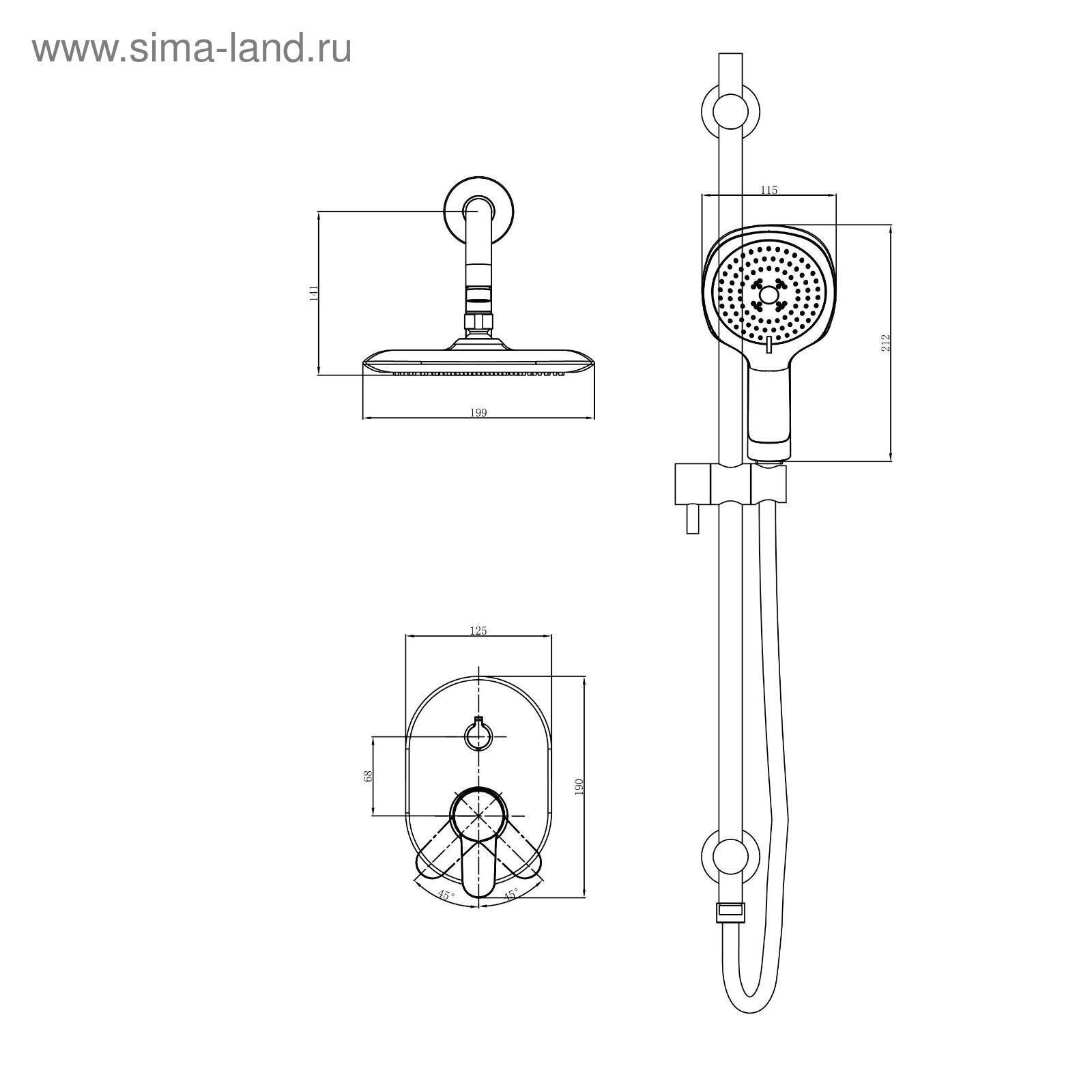 Душевая система D&K Rhein Marx DA1395701, встраиваемая, тропический душ, ручная лейка, хром 566492