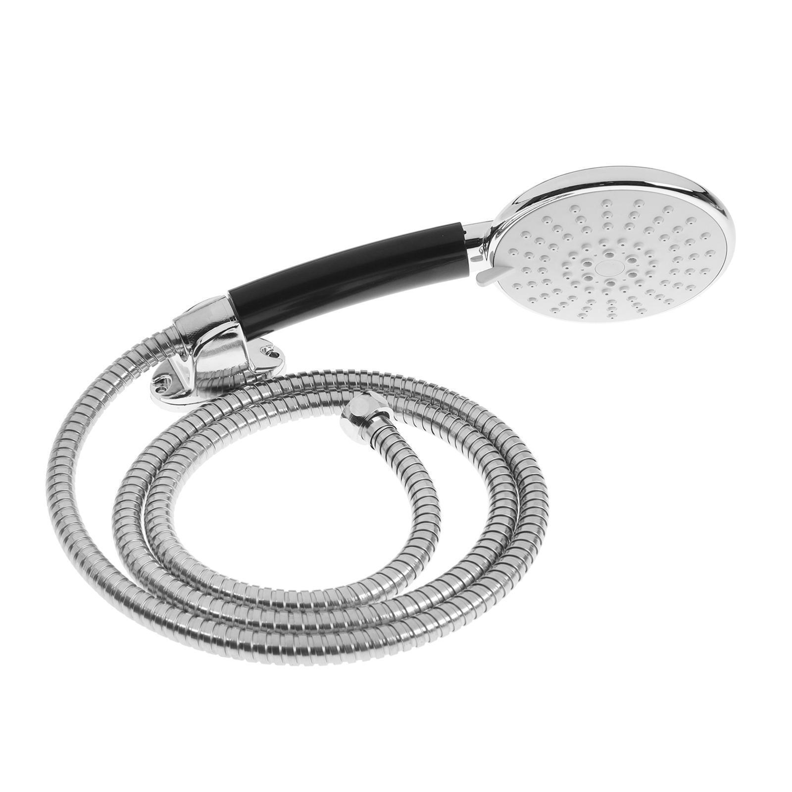 Лейка имеет круглую форму и выполнена из ABS-пластика. Встроенный в душевую лейку переключатель потока воды дает возможность изменять мощность струи и оптимизировать расход воды. Настенный кронштейн для лейки — неповоротный. Шланг изготовлен из нержавеющей стали.