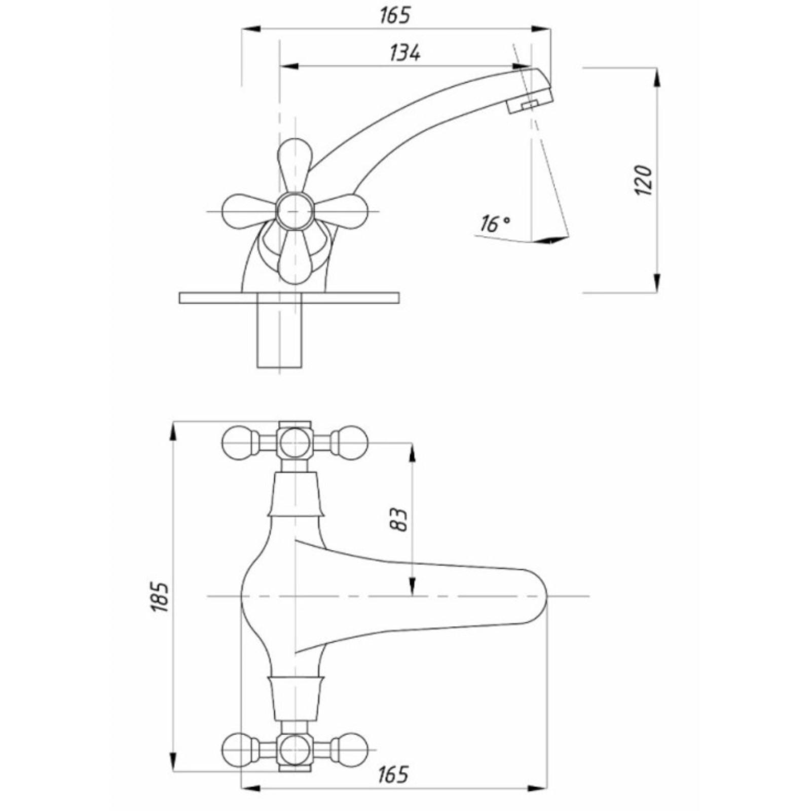 Смеситель для раковины TSARSBERG TSB-812-79, двухвентильный, длинна излива 134 мм, хром