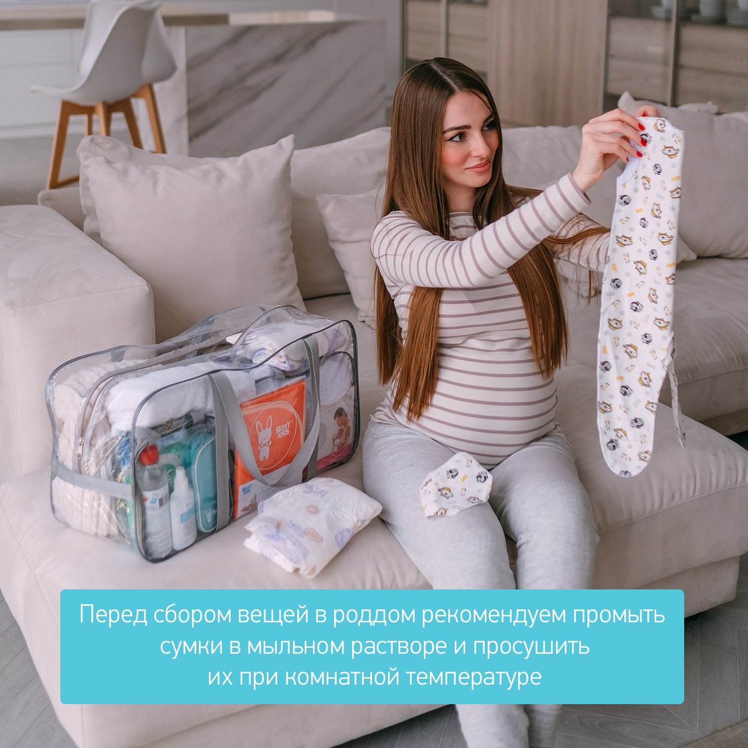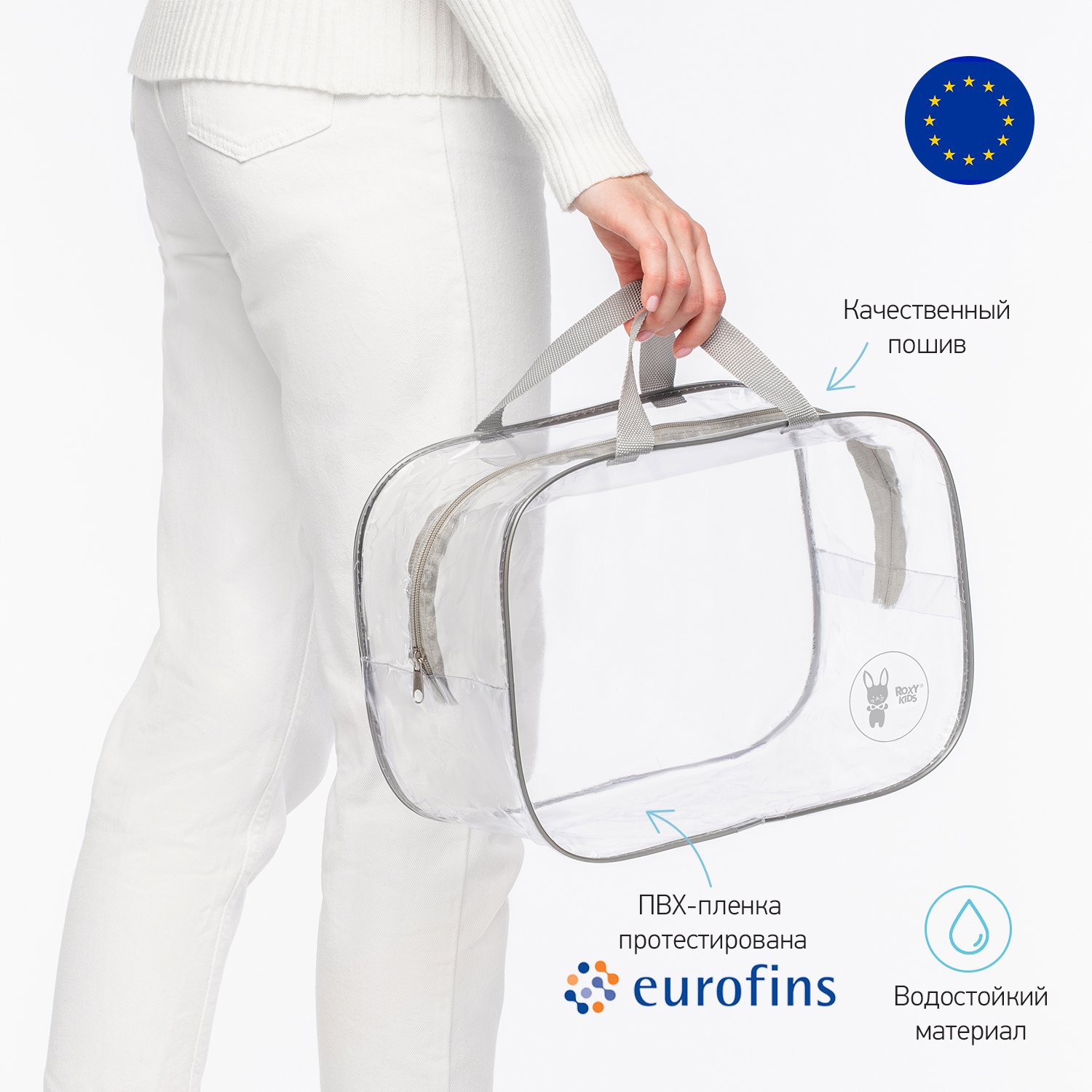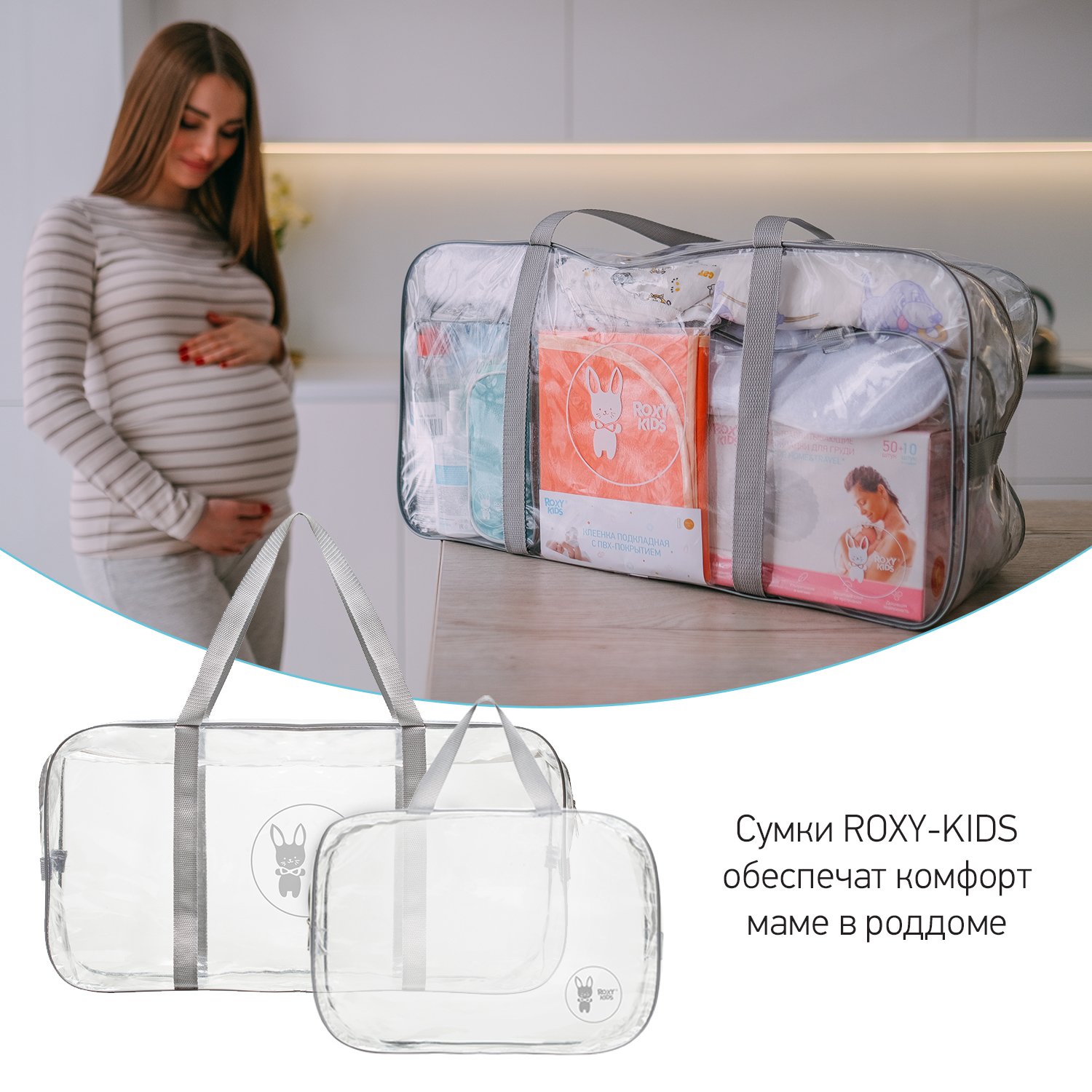 Сумка в роддом ROXY-KIDS прозрачная 2 шт серый RKB-005