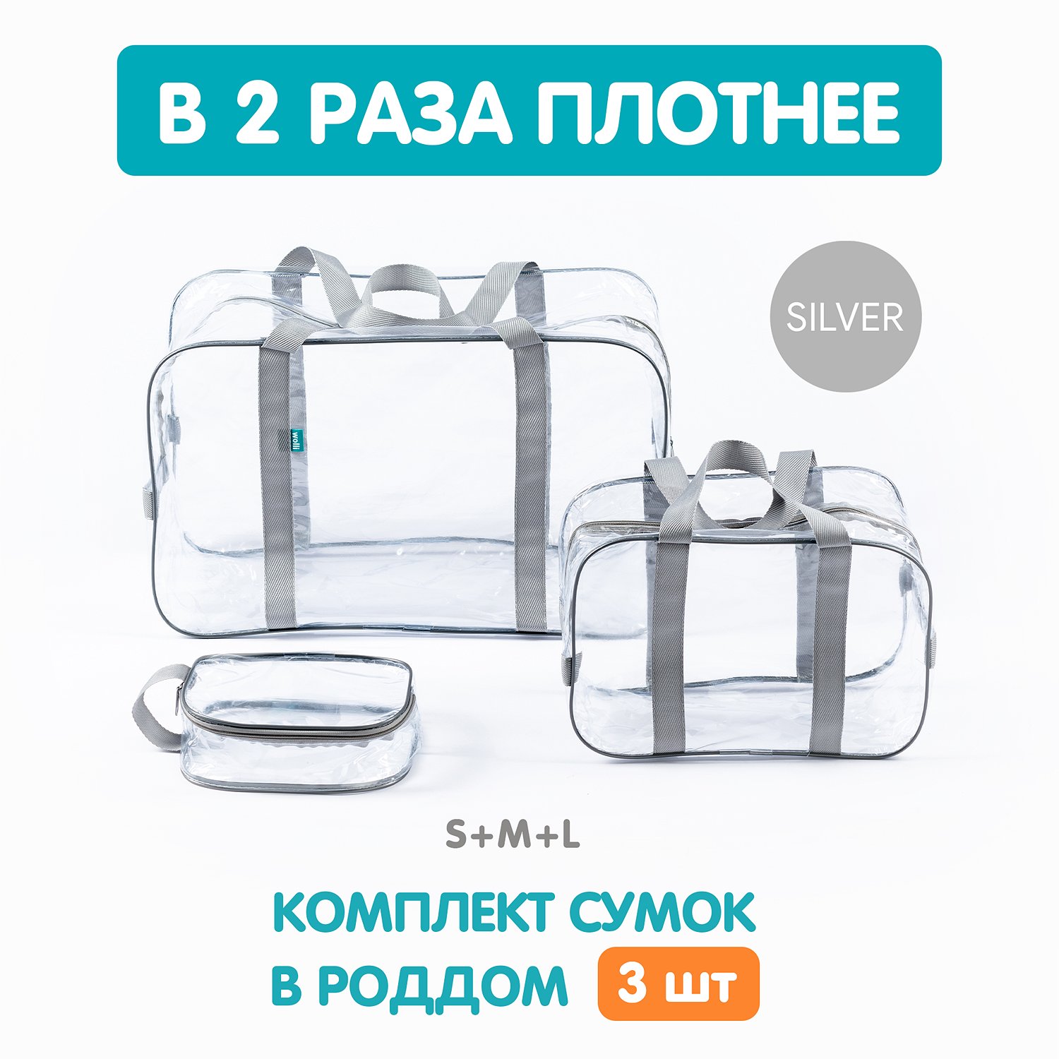 Сумка в роддом Wolli Прозрачный особо прочный серый комплект 3 шт PT1/103