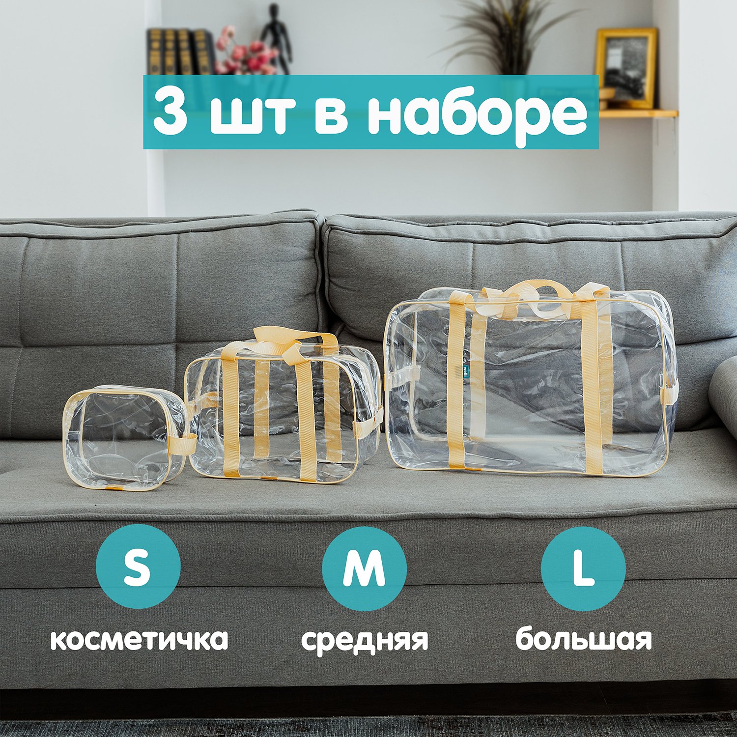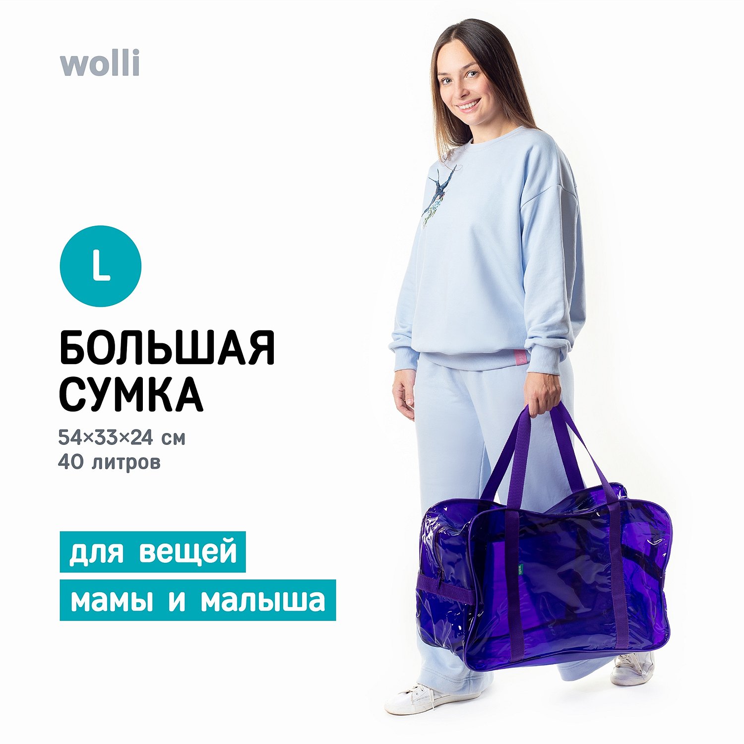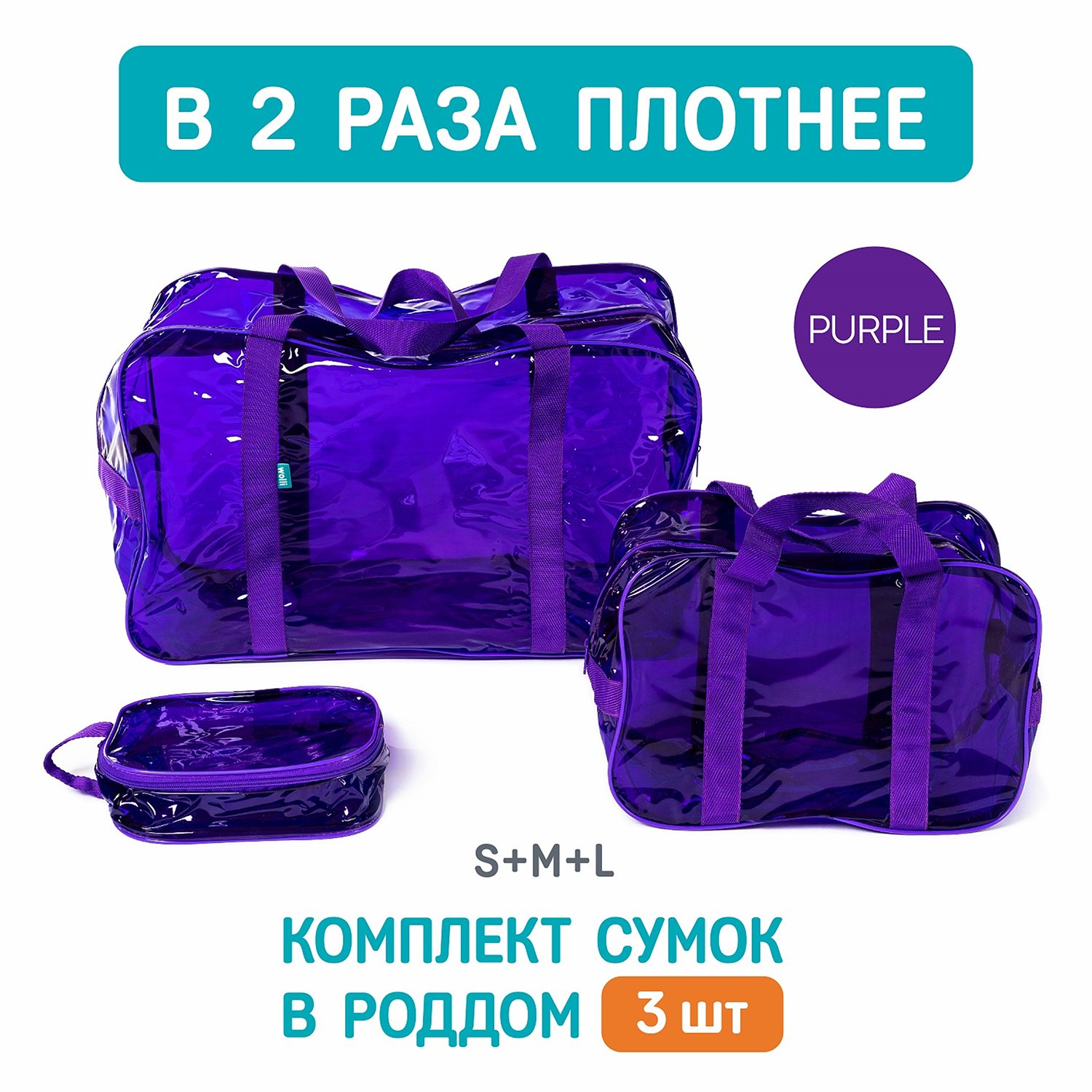 Сумка в роддом Wolli Тонированный особо прочный фиолетовый комплект 3 шт PT1/112
