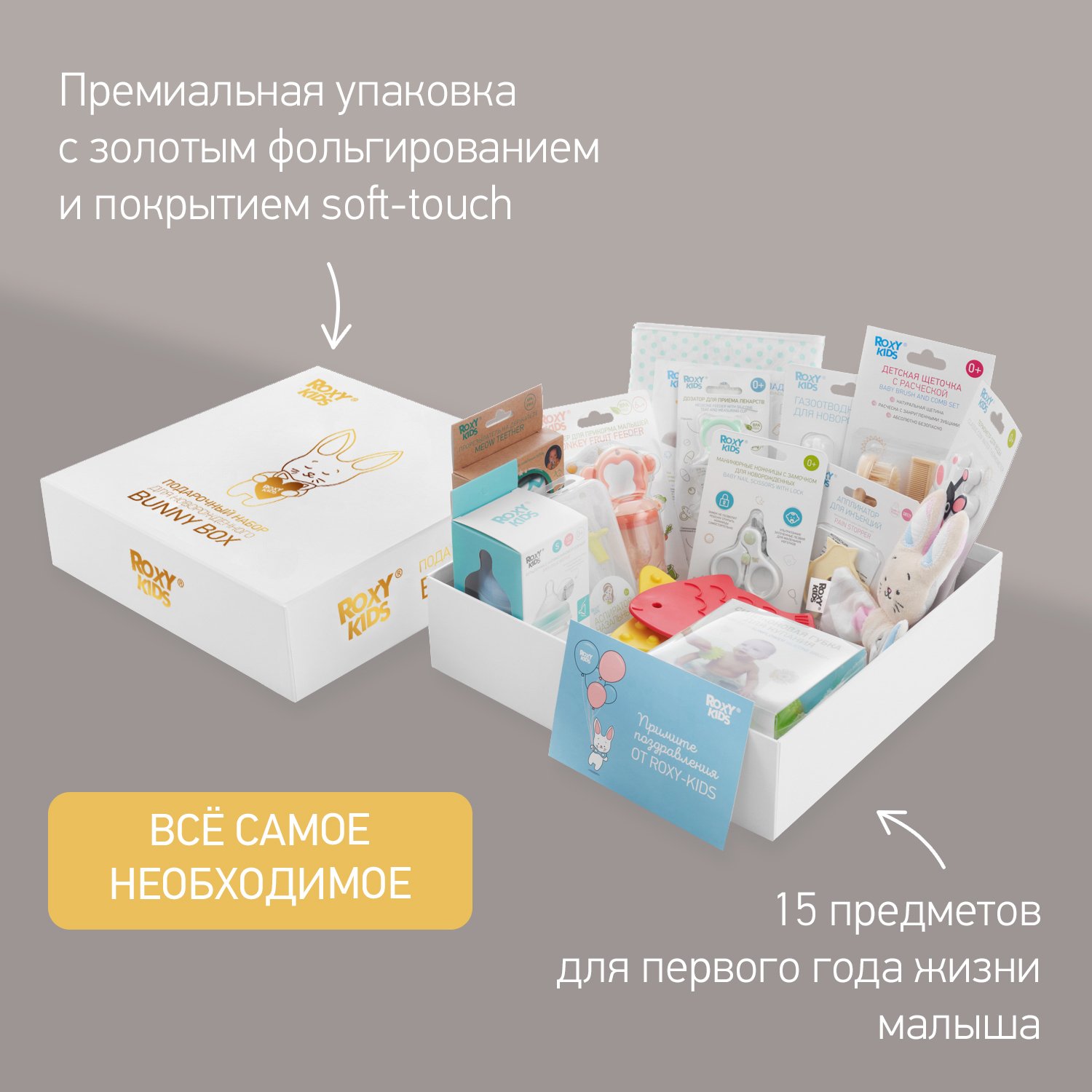 Подарочный набор ROXY-KIDS для новорожденного. На выписку из роддома 15 предметов RGF-002