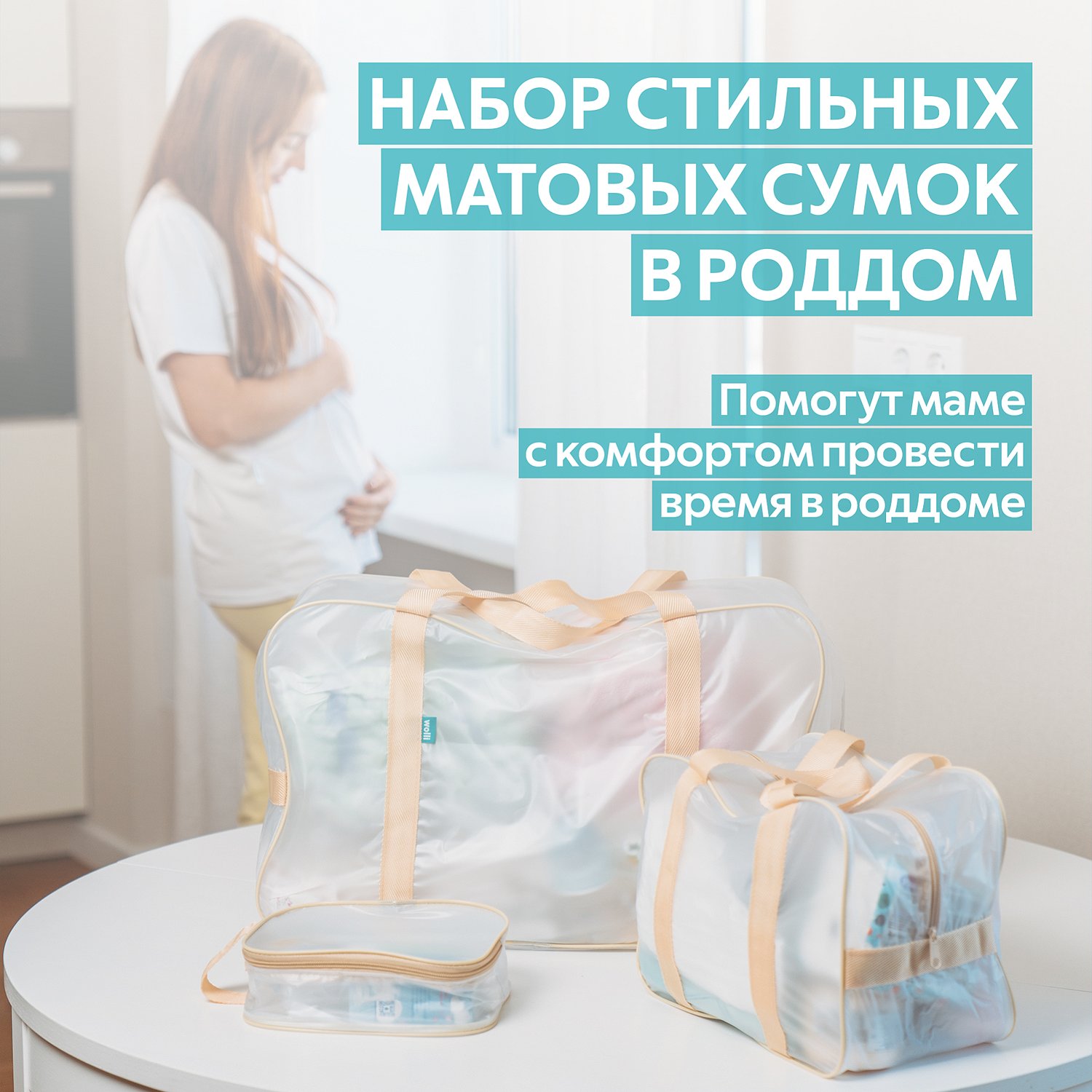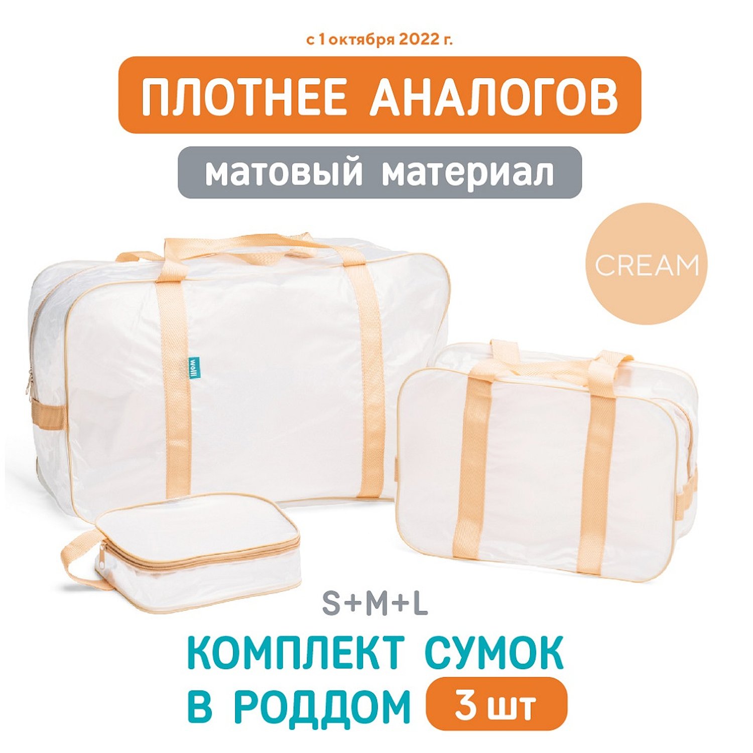 Сумка в роддом Wolli Матовый бежевый комплект 3 шт KNGR-M/02