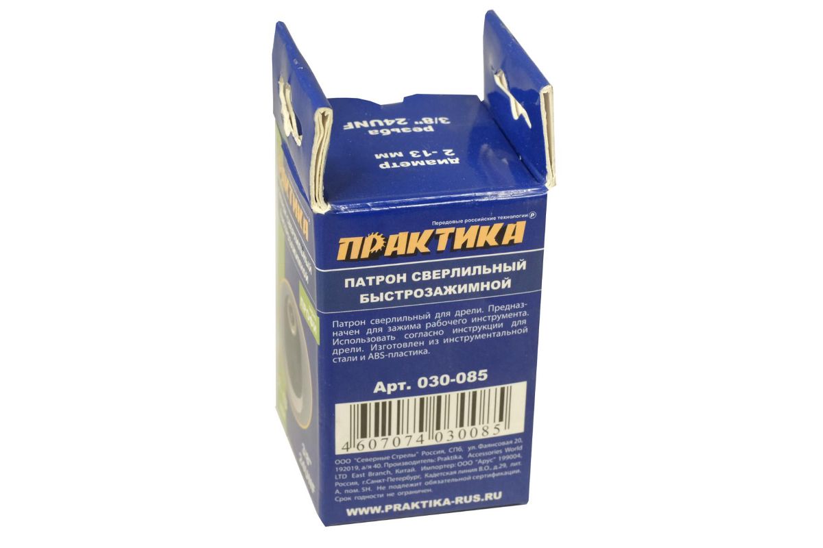 Патрон быстрозажимной ПРАКТИКА 030-085 13мм 3/8''-24UNF Для дрелей и шуруповертов. Диапазон зажимаемых хвостовиков 2-13,0мм