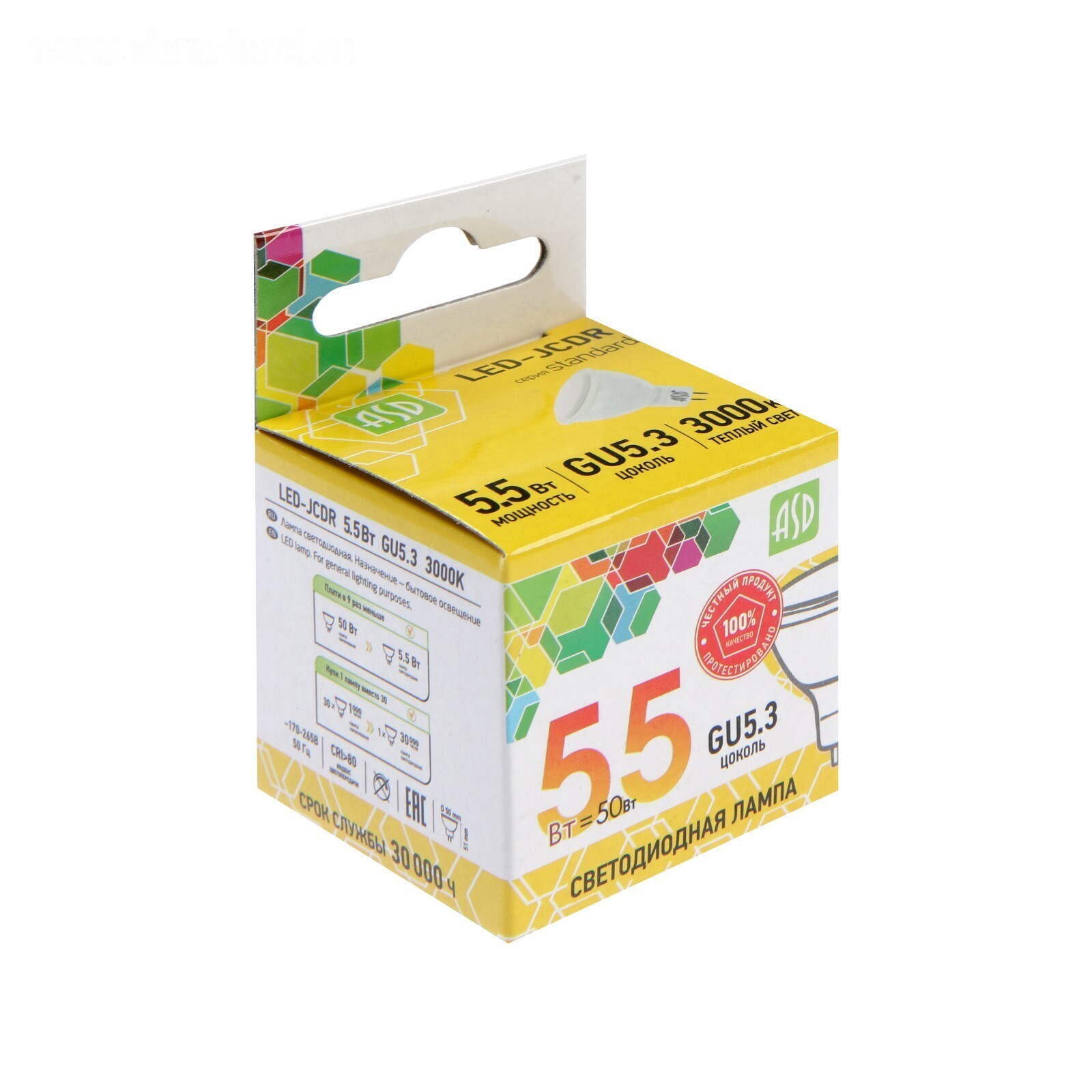 Лампа светодиодная ASD LED-JCDR-standard, GU5.3, 5.5 Вт, 230 В, 3000 К, 495 Лм