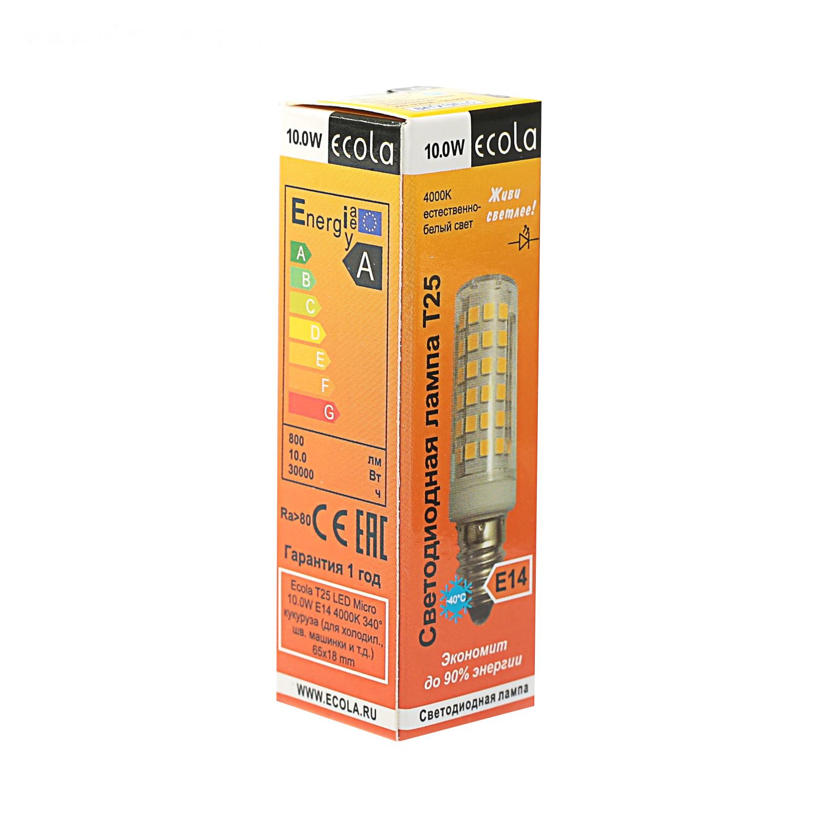 Лампа светодиодная Ecola, E14, T25, 10 Вт, 4000 K, 340°, для холодильников и швейных машин
