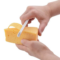 С сырорезкой вы легко нарежете сыр на аккуратные ломтики. Струны с обеих сторон изделия зафиксированы на разной высоте, что позволяет получать ломтики разной толщины. Изготовлено: корпус из пластмассы, струна из коррозионностойкой (нержавеющей) стали. После использования промыть мягкой щеткой или губкой, можно с использованием жидких моющих средств.