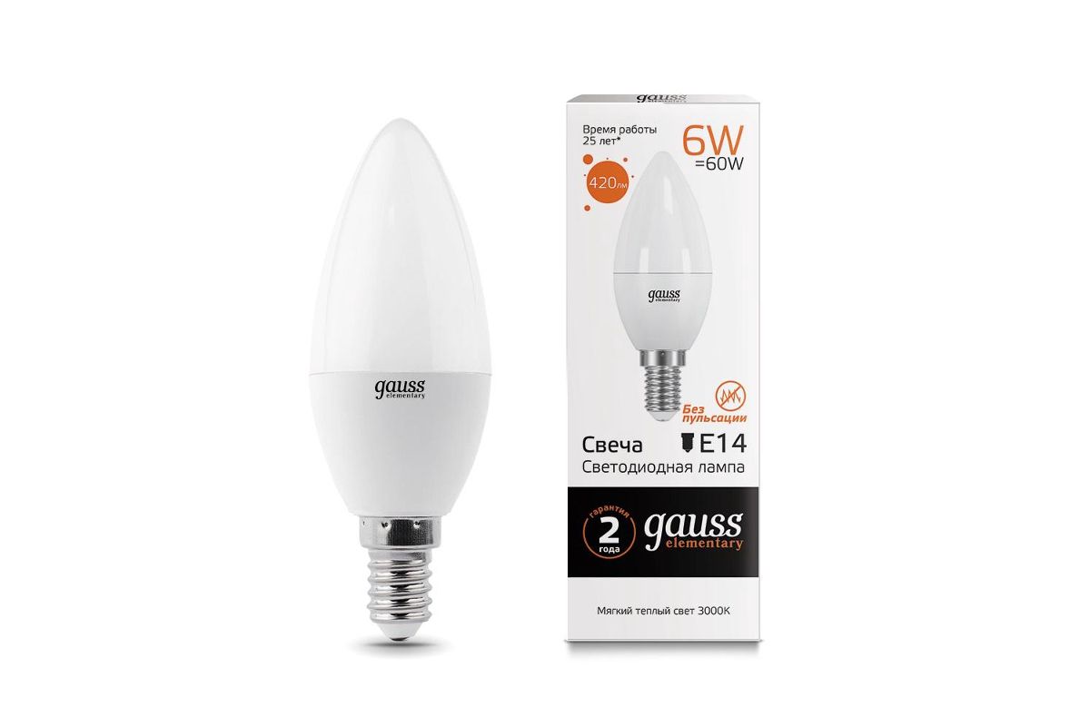 Лампа GAUSS LED Elementary Candle 6W E14 30000K Арт. 33116