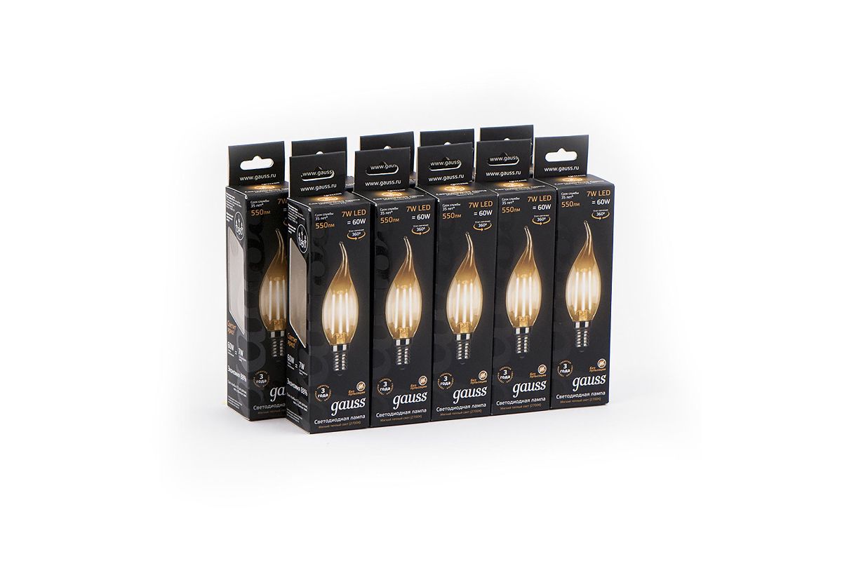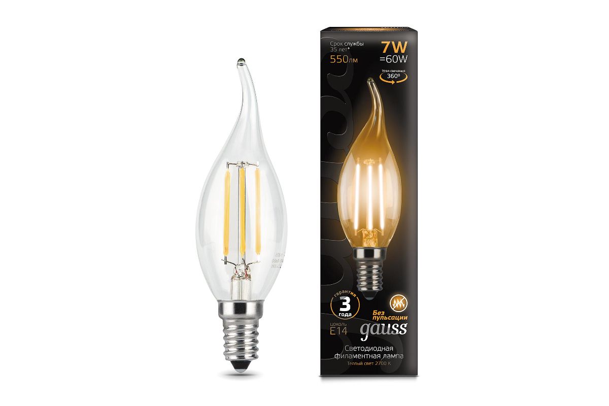 Лампа GAUSS 104801107 led filament candle tailed e14 7w 2700к 1/10/50 Лампа Gauss LED Filament Candle tailed E14 7W 2700К 1/10/50