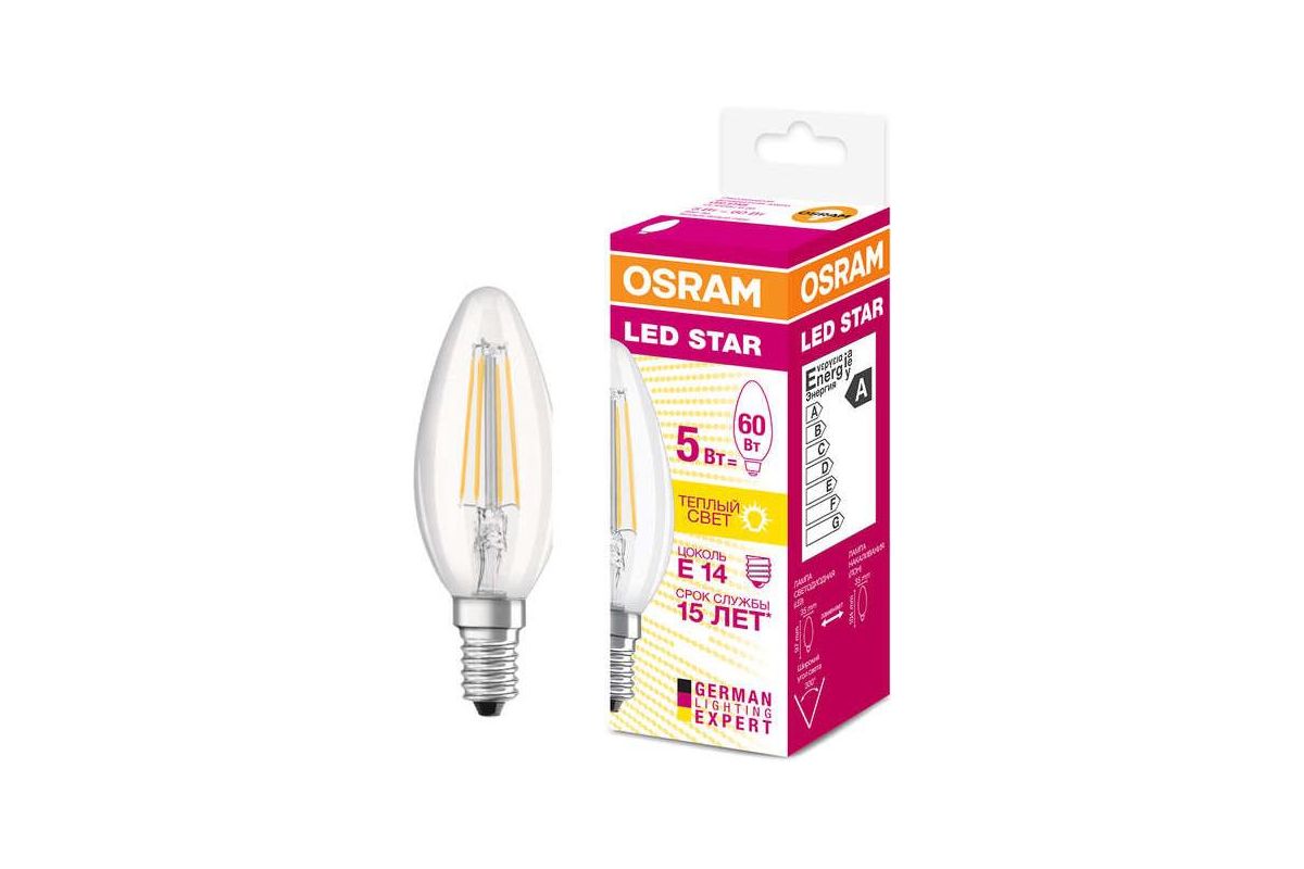 Лампа светодиодная LEDVANCE OSRAM LSCLB60 CL 5W/827 230V FIL E14 FS1 OSRAM