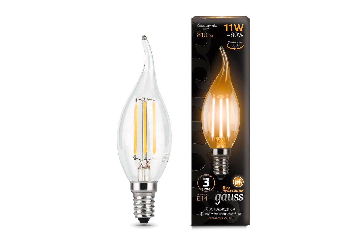 Лампа GAUSS 104801111 LED Filament Свеча на ветру E14 11W 810lm 2700K 1/10/50