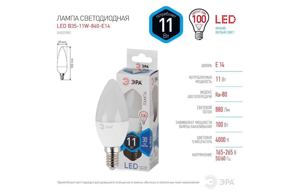 - Мощность: 11 Вт;