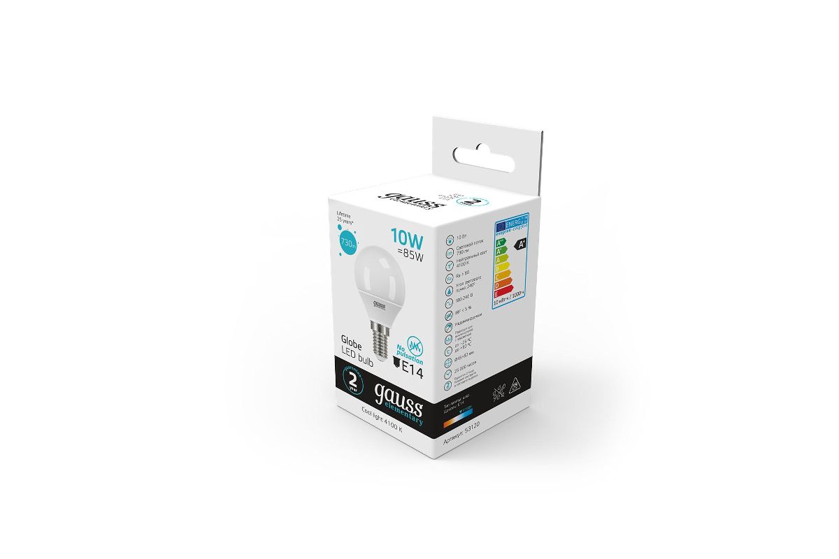 Лампа GAUSS 53120 led elementary globe 10w e14 4100k 1/10/100 Лампа Gauss LED Elementary Globe 10W E14 4100K 1/10/100