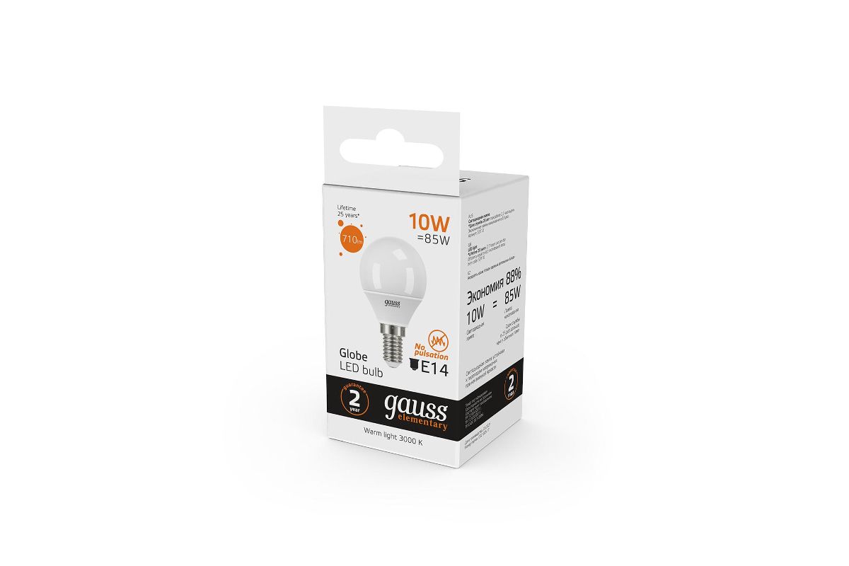 Лампа GAUSS 53110 led elementary globe 10w e14 3000k 1/10/100 Лампа Gauss LED Elementary Globe 10W E14 3000K 1/10/100