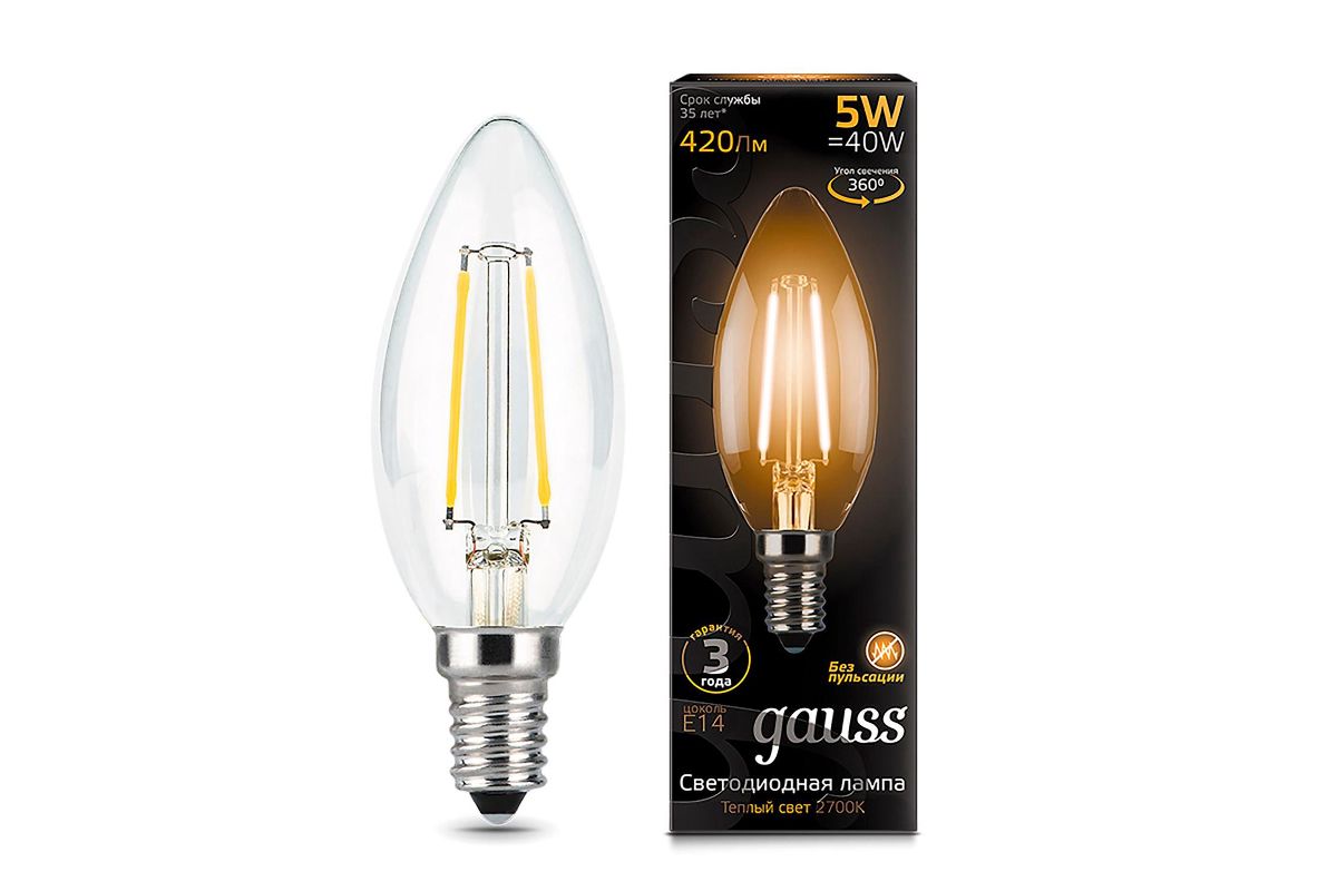 Лампа светодиодная GAUSS 103801105 LED Filament Candle E14 5Вт 2700к 1/10/50