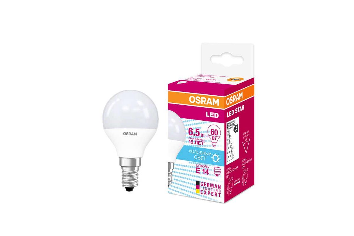 Лампа светодиодная LEDVANCE OSRAM LEDSCLP60 6,5W/840 230VFR E14 FS1