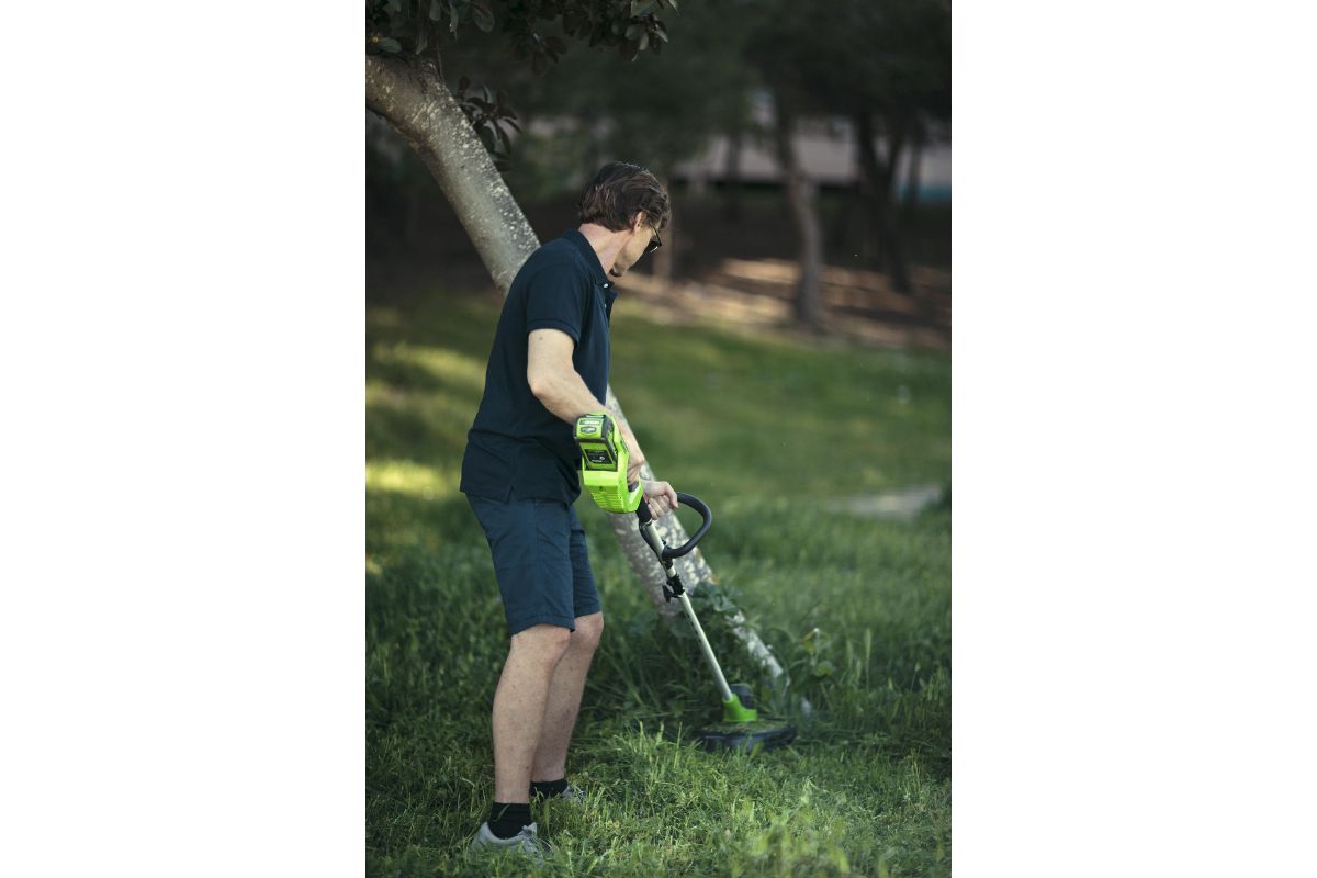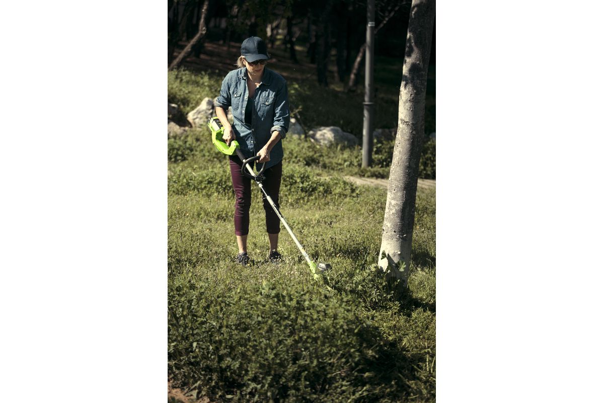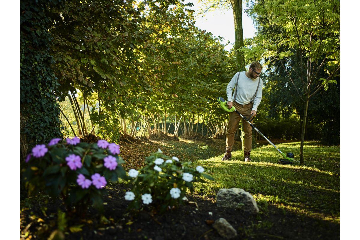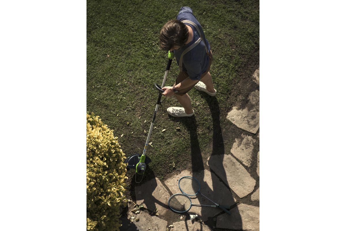 Аккумуляторный триммер GREENWORKS GD40LT30 подойдёт для ухода за дачным участком или небольшим садом. Работает с леской диаметром до 1,6 мм. Предназначен для подравнивания молодой травы.
